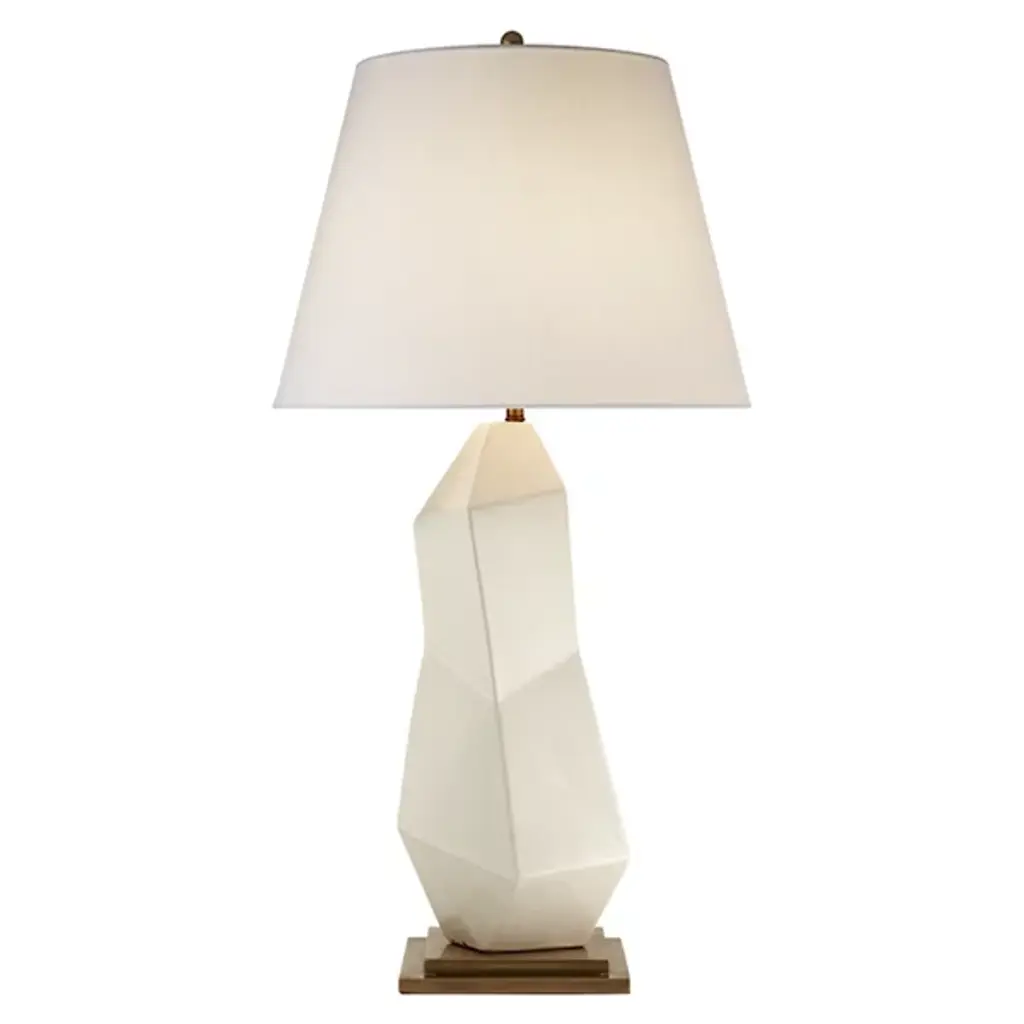Visual Comfort Halcyon Mid Century Modern Alabaster Linen Shade Accent Table Lamp
