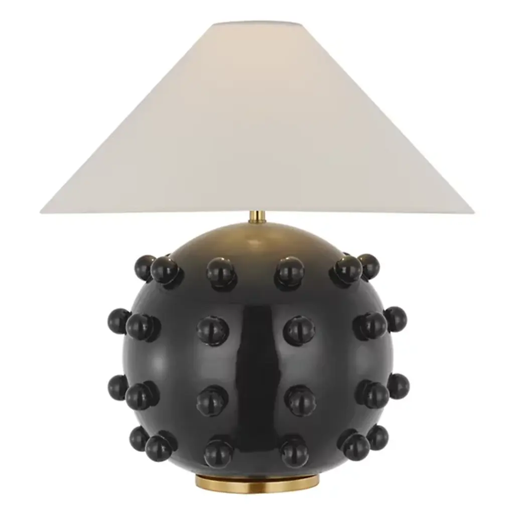 Visual Comfort Linden Mid Century Black Porcelain Linen Shade Table Lamp - Large