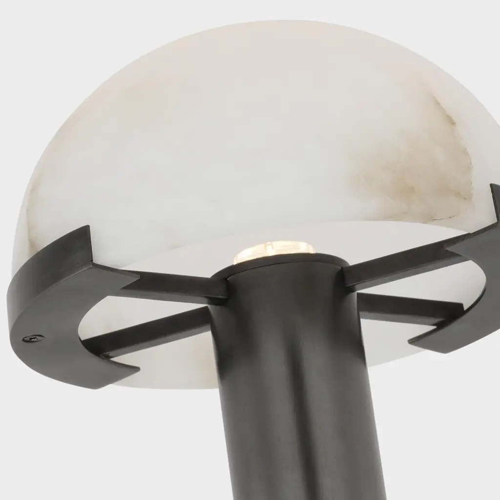 Visual Comfort Melange Alabaster Shade Bronze Rechargeable Table Lamp - 8"