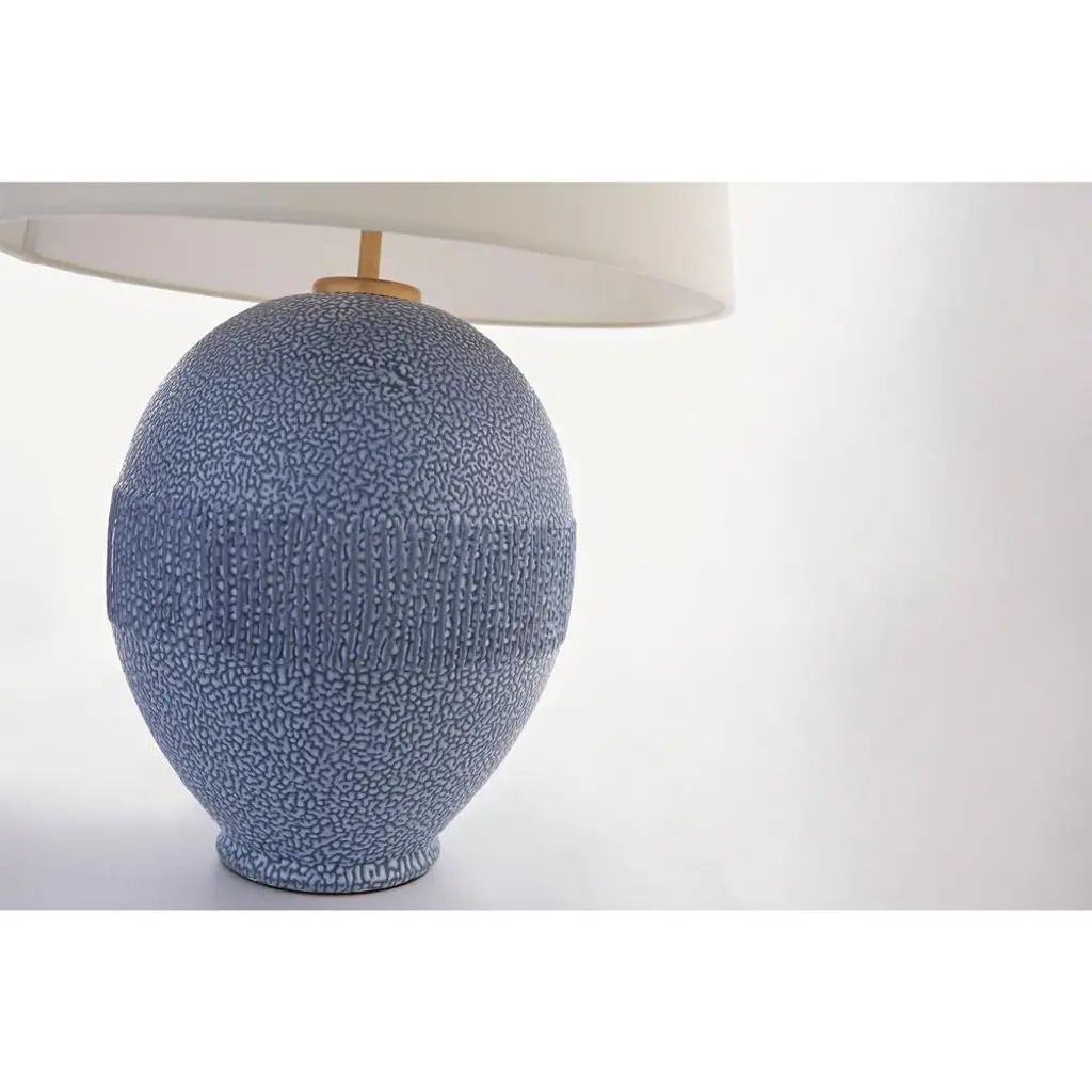 Visual Comfort Toulon Global Bazaar Beaded Blue Ceramic Linen Shade Table Lamp