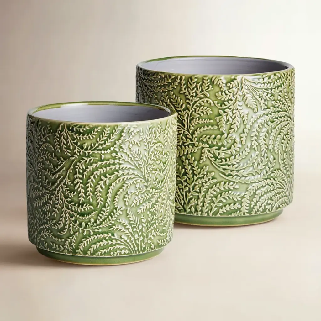 A charming assortment of petite pots, the viva Garden collection shows that great charm can come in small packages. Pair the Green Embossed Leaves Cachepot with herbs or a small plant for the perfect gift. Since 1983, Vietri has specialized exclusively in Italian handcrafted ceramics, stainless and pewter flatware, mouth blown glassware, lamps, urns and planters. Families of artisans with 3 or 4 generations of history create these special pieces using centuries-old techniques. The subtle color from a paintbrush and the curving stroke of the artist's hand are never repeated in quite the same way, making each piece truly unique.