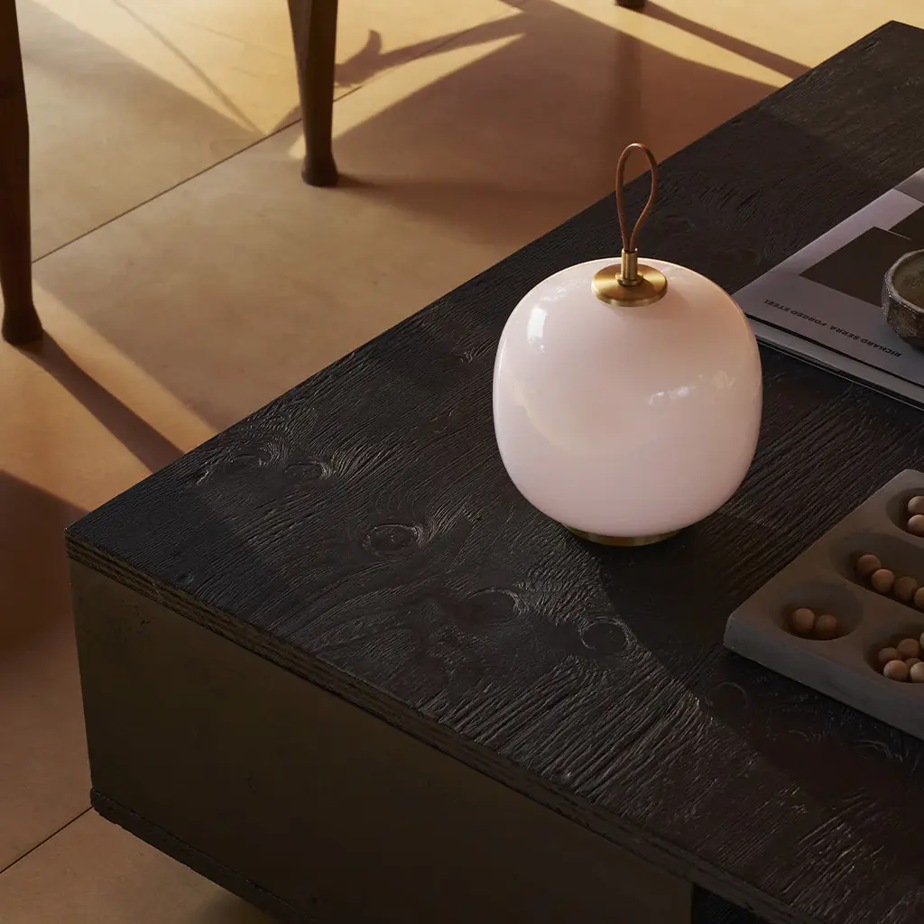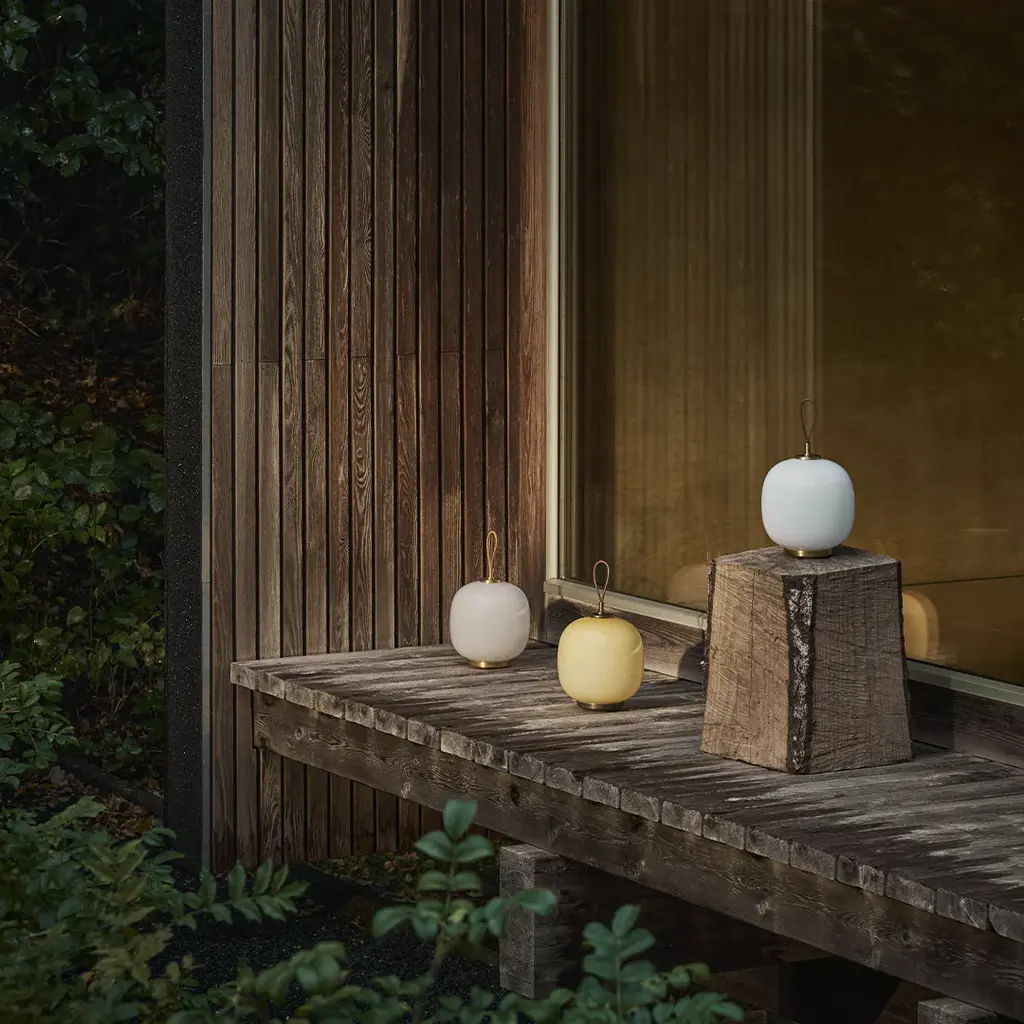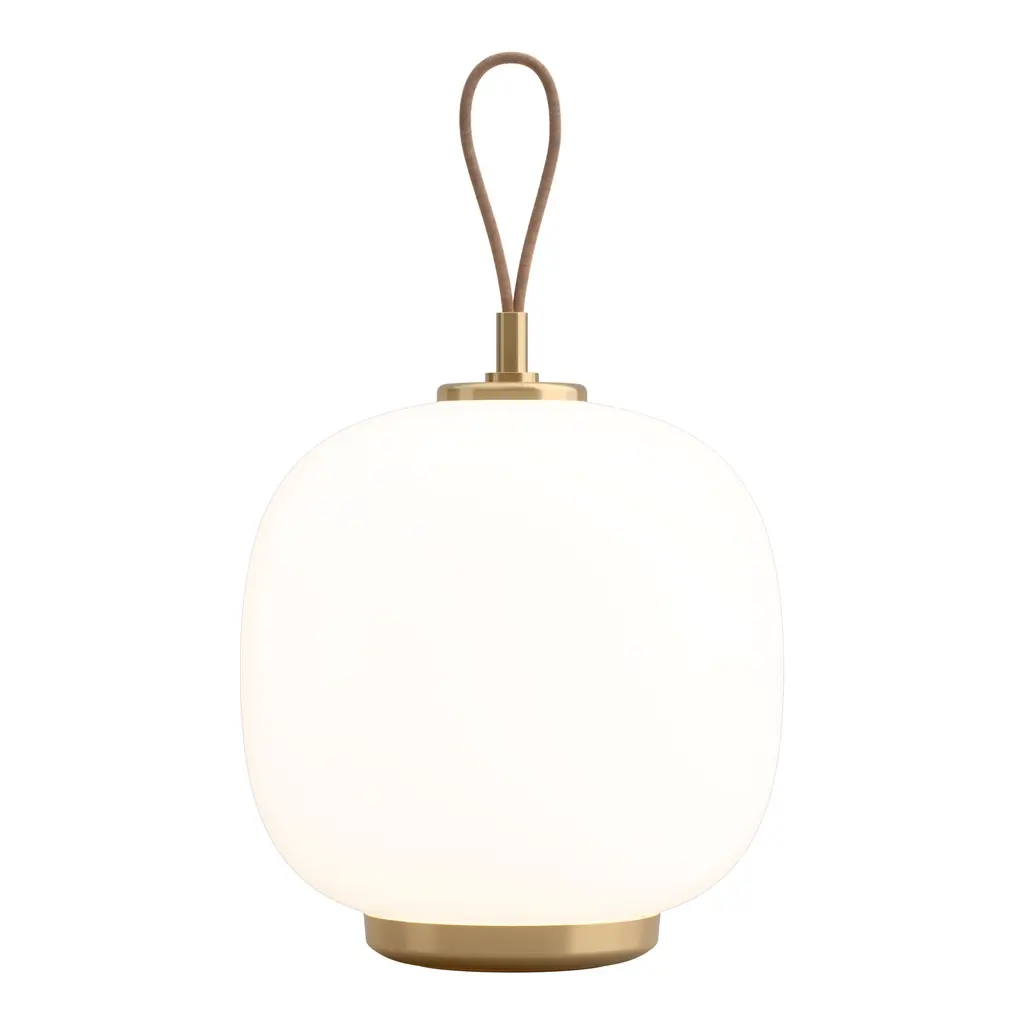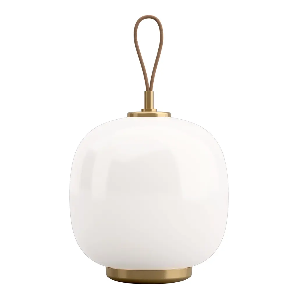 Exquisite craftsmanship based on Vilhelm Laurtizen's poetic VL45 Radiohus PendantThe VL 45 Radiohus Portable Lamp is crafted from glossy, multi-layered mouth-blown glass with brass details, and with a handle in genuine leather, adding to its luxurious look and feel.