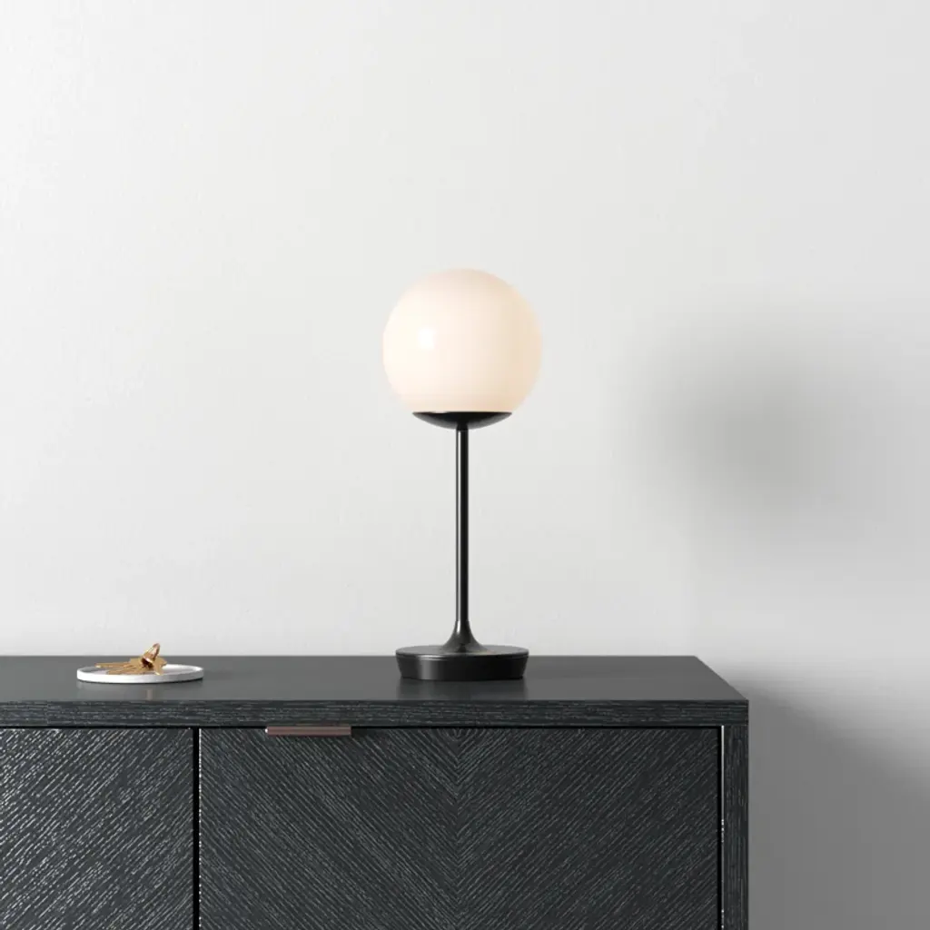 Sleek + modern. Illuminate your space with this table lamp. The plastic base houses an integrated LED light that's dimmable and energy-efficient. With a touch switch and a globe-shaped shade, it's the perfect addition to any contemporary setting.