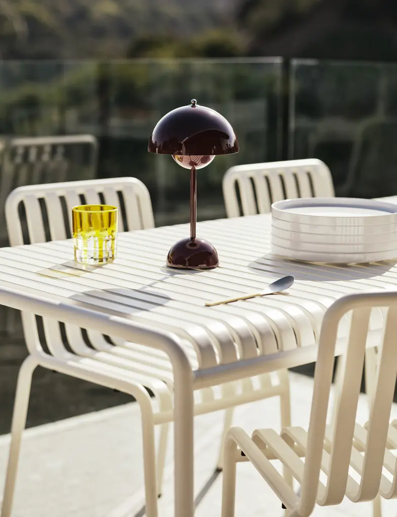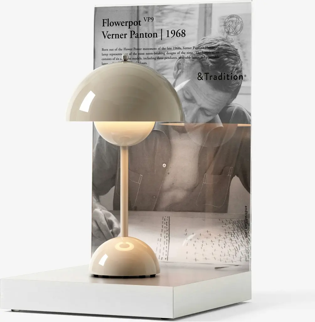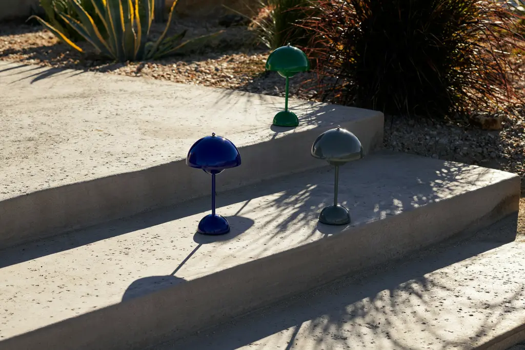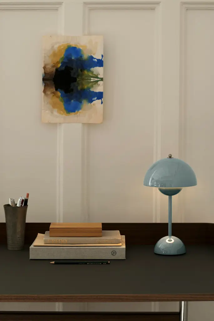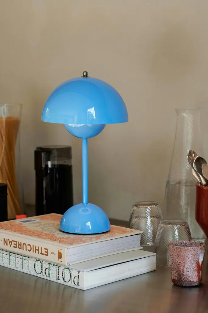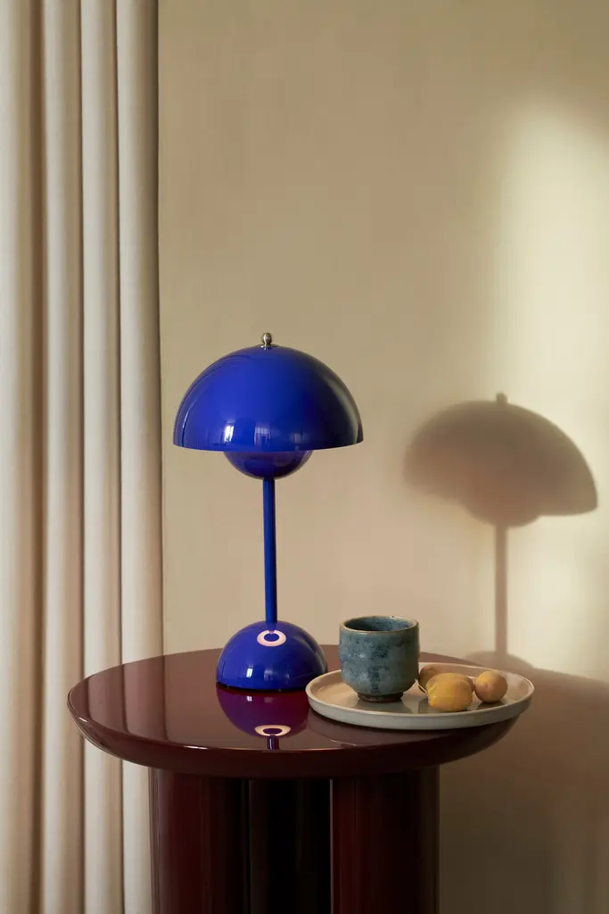 Verner Panton made his mark as a master of pop with explorations in geometric forms and bold colors - an approach made clear in his Flowerpot lighting series. A standout of 1960s Danish design, the lightweight VP9 Flowerpot Portable Lamp (1968) features a deceptively simple form that casts a soft glow, infusing spaces with a playful spirit. Equipped with a touch dimmer, it comes with a USB charging cable to power it up for use indoors or out. Bulb (included): Integrated LED. Made in China.