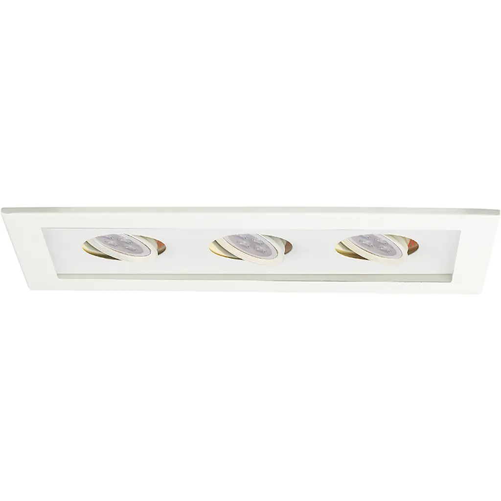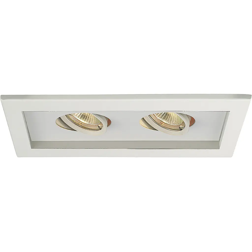Low Voltage Multiple Spots are ideal for perimeter lighting applications in smaller scale retail, commercial and hospitality environments. Square single light gimbal ring style adjustable recessed fixture, available with flanged trim or Invisible Trim, designed to sit flush with the ceiling for a clean architectural look. Housing, trim, and lamp are sold separately.