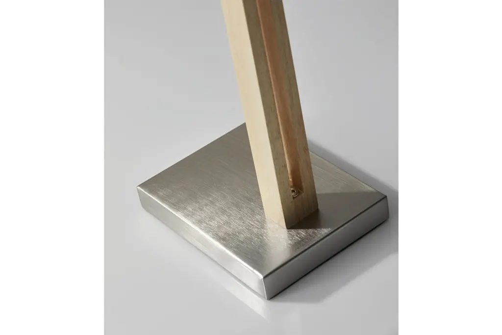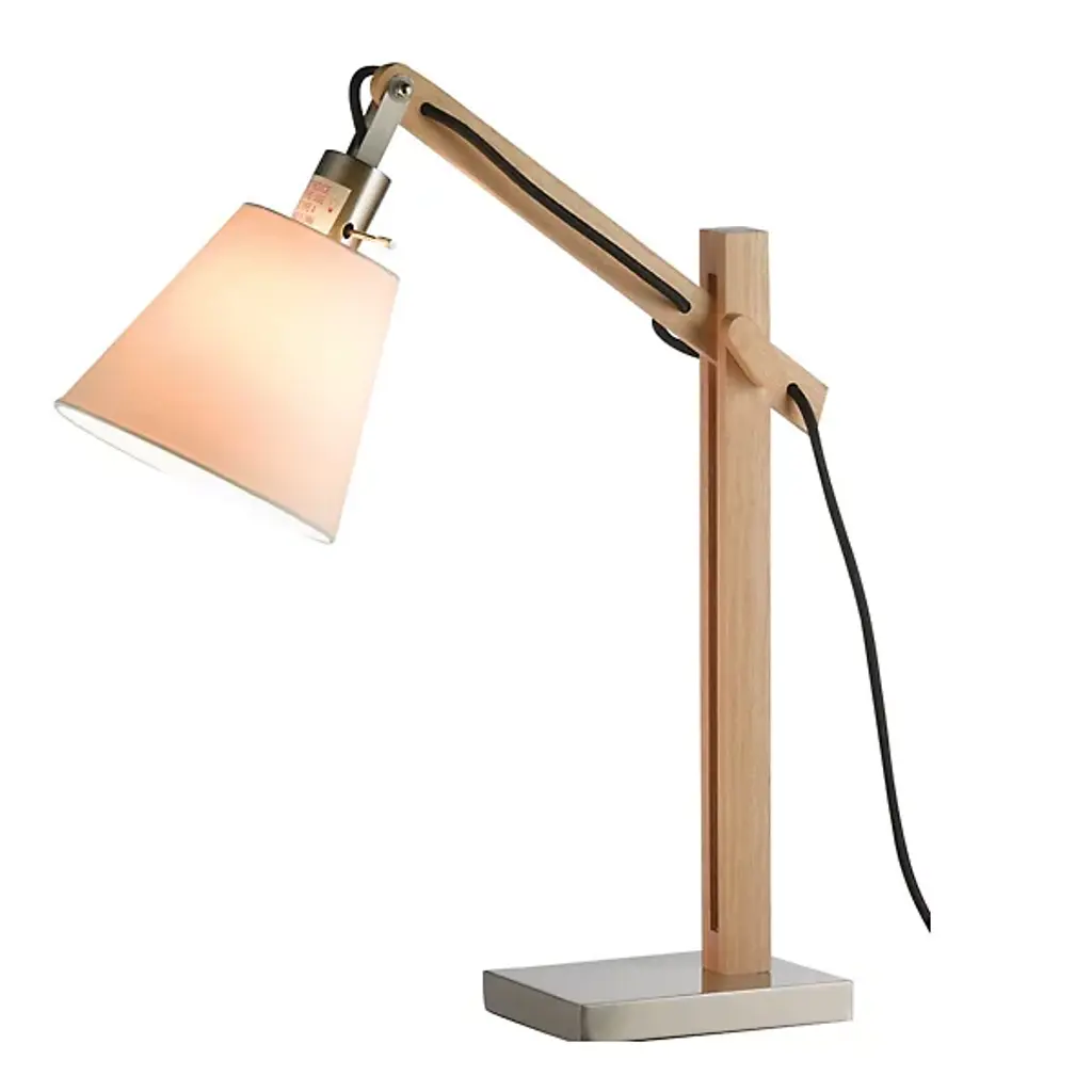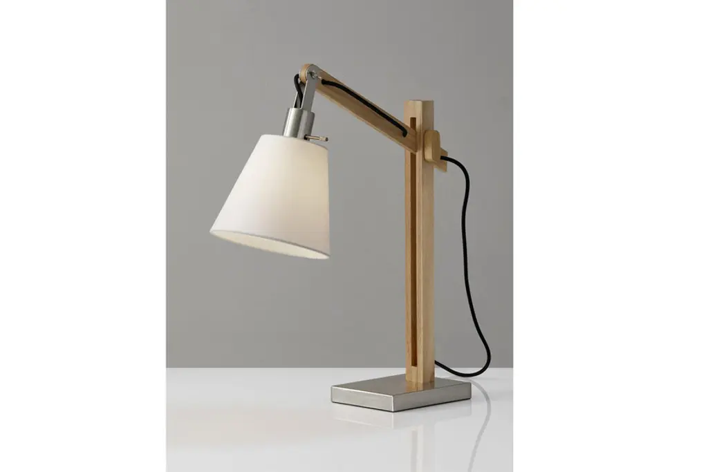 Featuring the homegrown appeal of a handmade craft, along with the elegant edge of metal accents, Adessos rustic yet refined walden Table Lamp offers simple sophistication in unique lighting. Made with natural wood in a fresh finish, the Walden is supported by the clean lines of a satin steel base and topped by a poly-cotton bell-shaped shade. Adjustable up to 21 inches, Adessos Walden Floor Lamp brings an attractive and unexpected handcrafted hint to the modern space, on its own, in a set, or along with Adessos Walden Floor Lamp.Shade: 7"diameter x 6.5"h