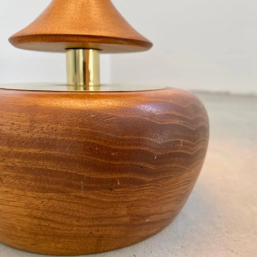 Walnut And Brass Push Table Lamp By Modeline Of California