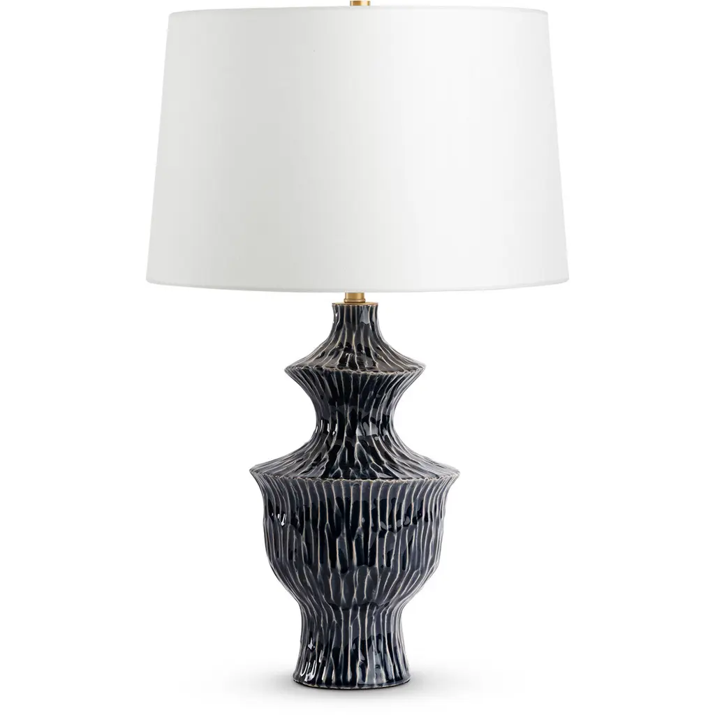 The Walter Table Lamp features a ceramic body with a vibrant palette, layered in horizontal stripes that create a dynamic, textured look. The rich shades evoke the rhythmic waves of the ocean, bringing a calming, yet striking visual interest to any space. Topped with a crisp lampshade, the lamp provides a fresh contrast to the vivid body, making it a perfect accent piece for both light and airy interiors as well as more boldly decorated rooms.