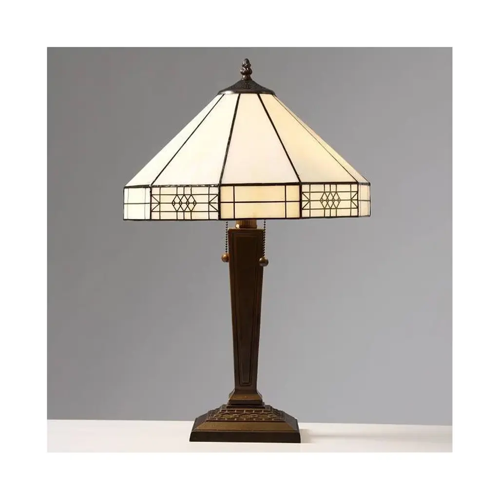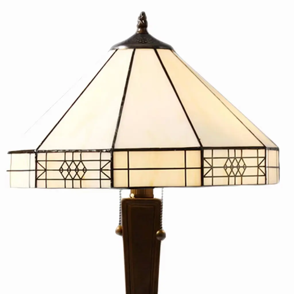 Warehouse Of Tiffany 14"x14"x21" Mission Style Table Lamp White/brown : Stained Glass, Metal Base, Etl Listed