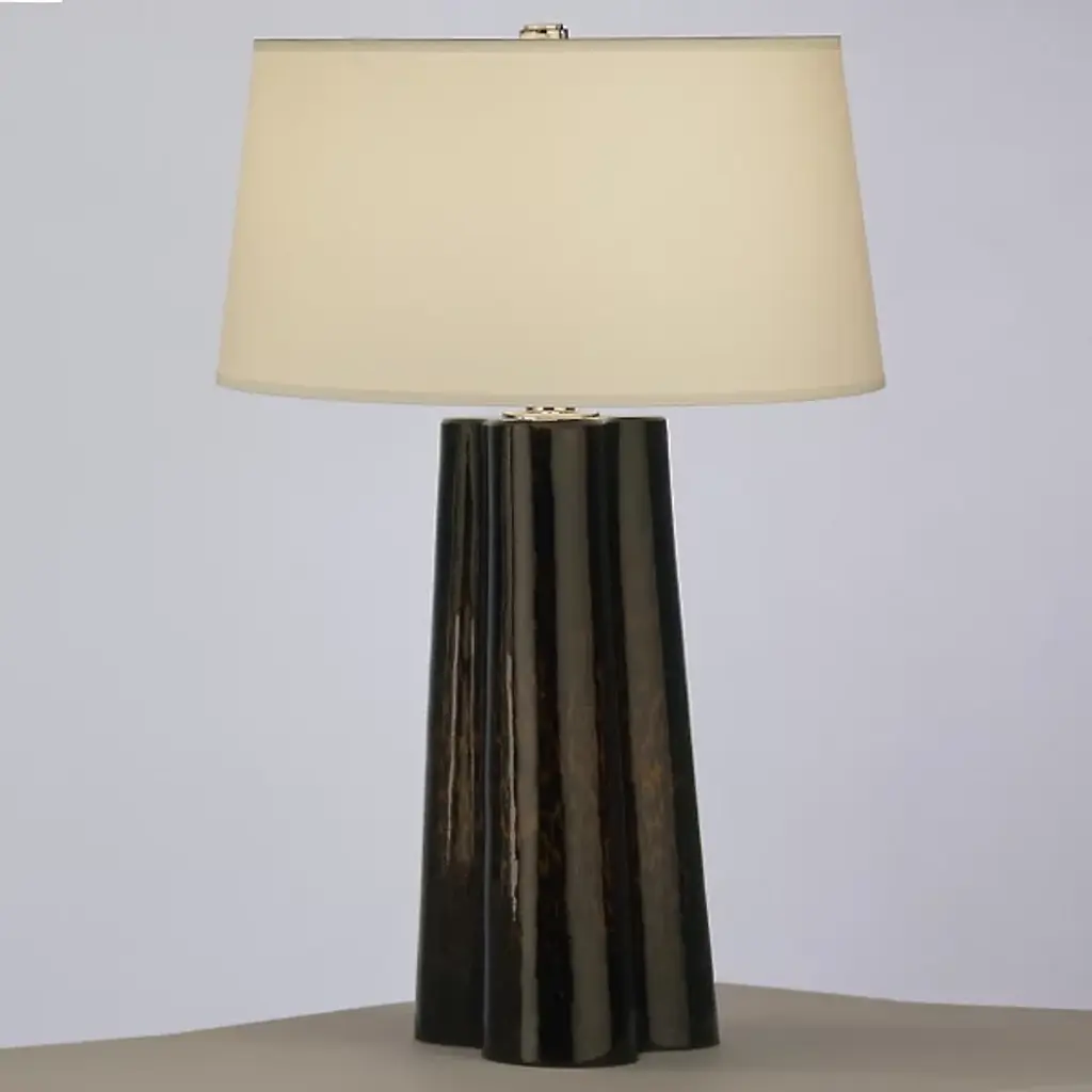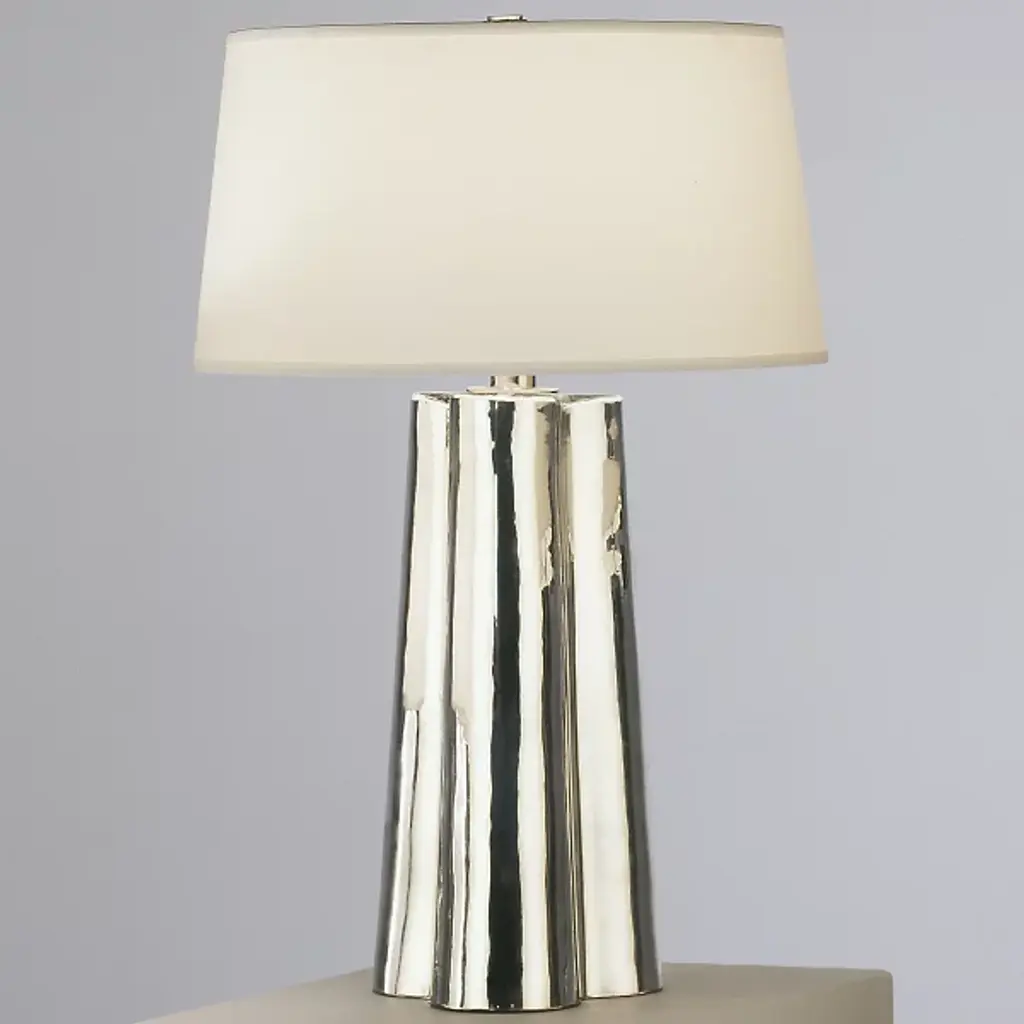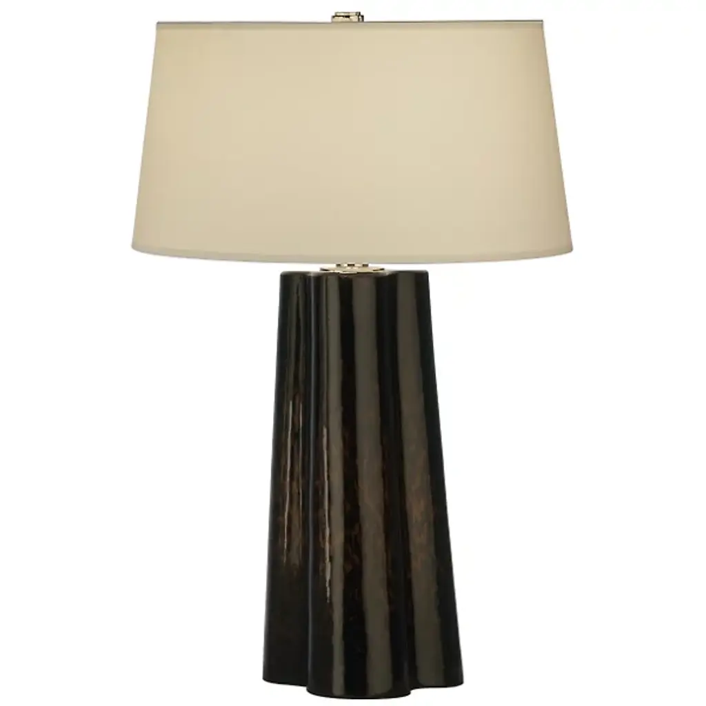 Stately and balanced, the Robert Abbey Wavy Table Lamp designed by David Easton presents a striking glass lamp complete with intense finish options and a White Mont Blanc parchment shade. Full range dimming capabilities work in conjunction with this product's uniquely attractive appearance.