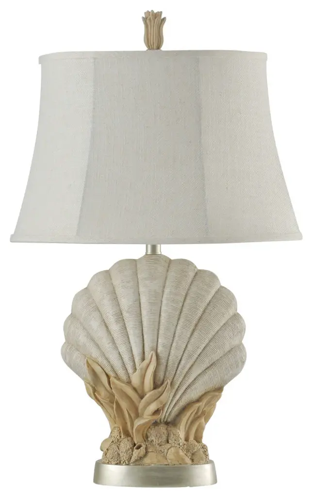 Weathered Coral Oval Genie Table Lamp With Starfish Accent