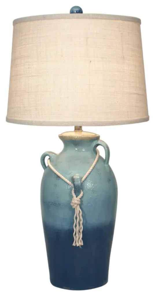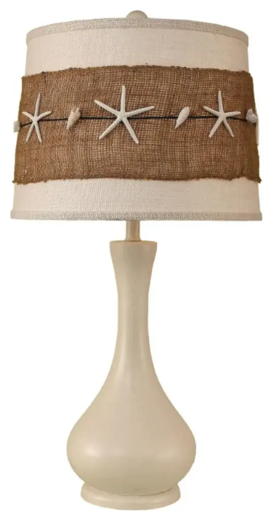 Weathered Turquoise Sea Oval Genie Table Lamp With Starfish Accent