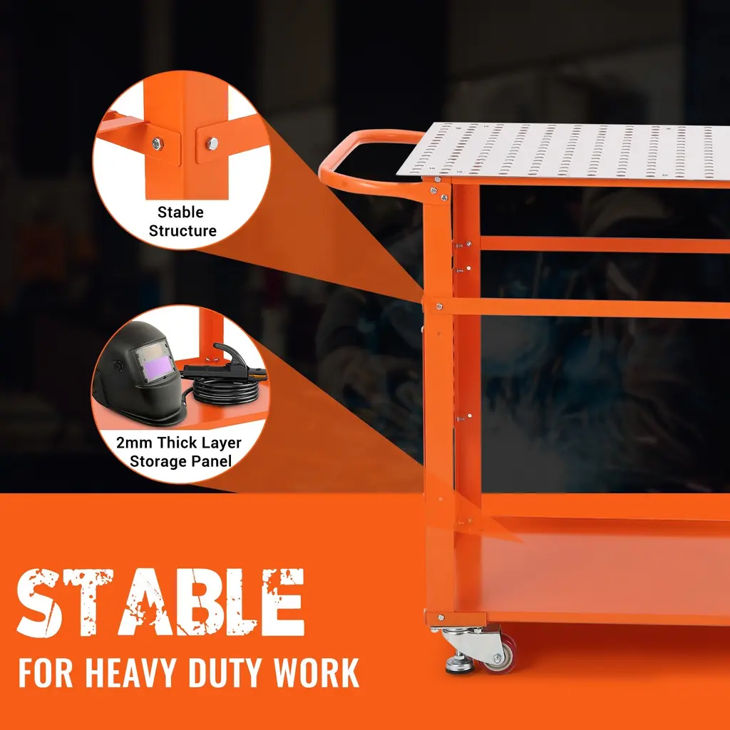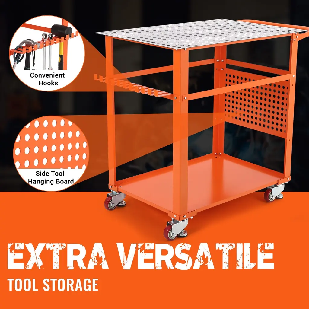 Welding Table 36"x24", 600lbs Load Capacity Steel Welding Workbench Table On Wheels With Double-Layer Storage Board - Orange