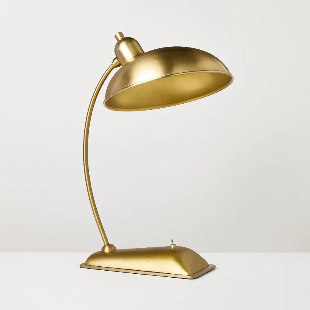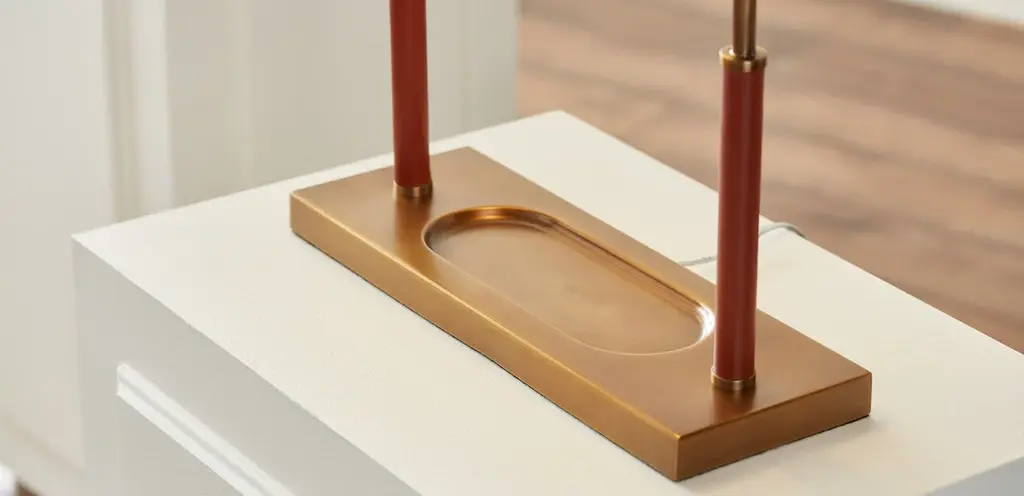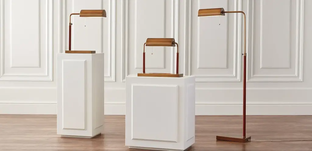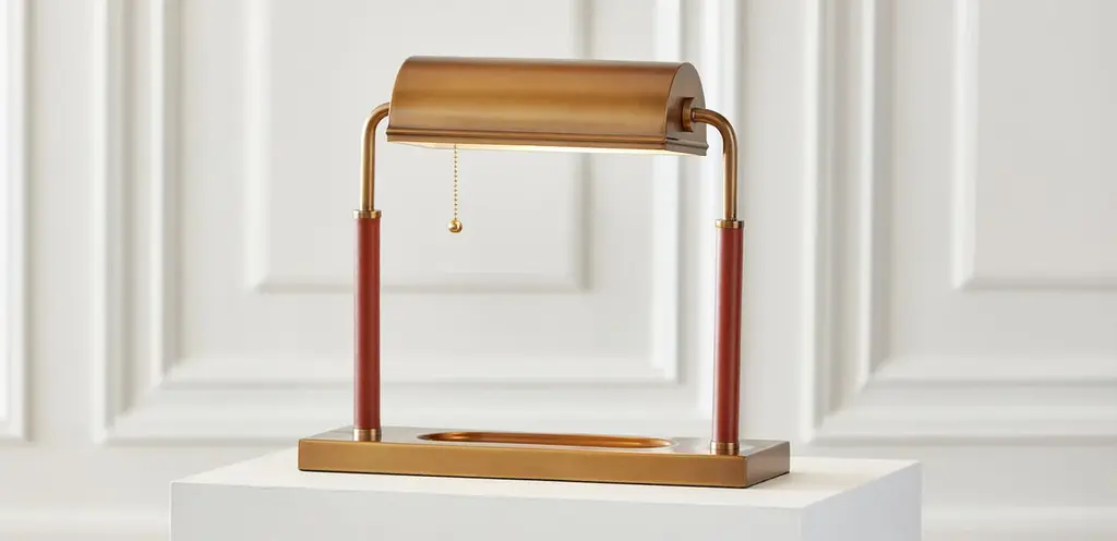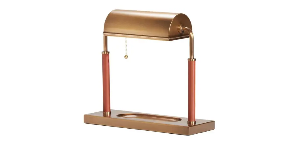 If you were designing a set for a classic movie, you'd place a Wesley banker's lamp in every typewriter-equipped office. Its antique brass finish and gentlemanly leather wrap set a gloriously retro mood while its catch-all tray and delicate pull chain bring functionality to the fore.