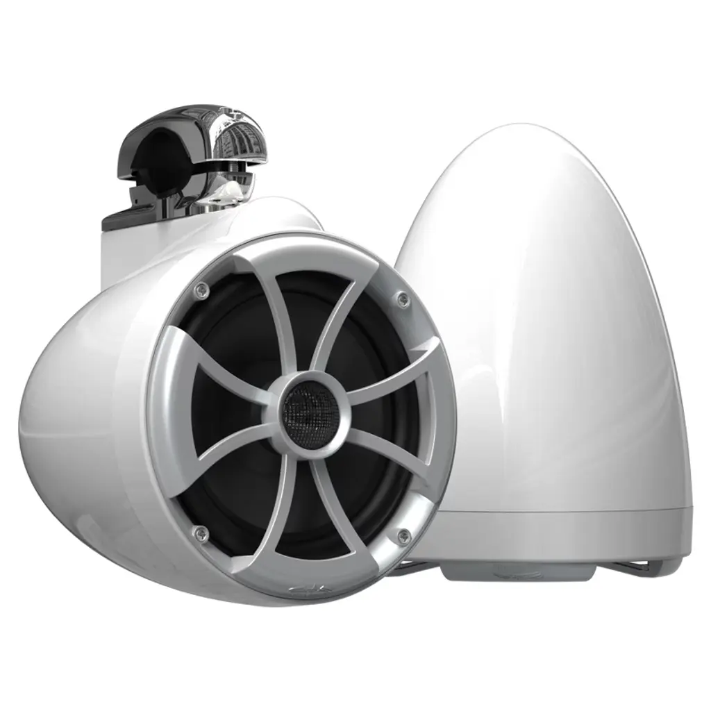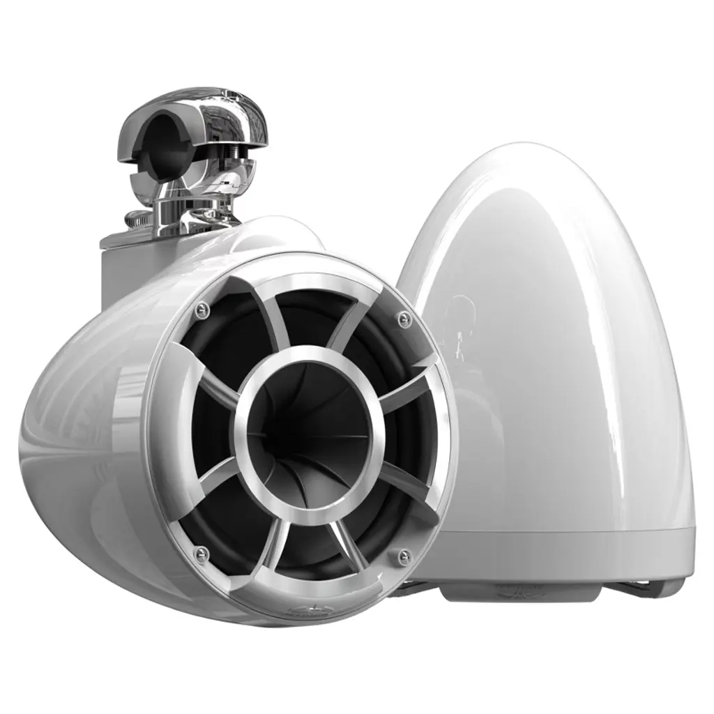Wet Sounds - ICON 8 Fixed Aluminum Clamp 8-Inch Tower Speakers - Black (pair) The ICON Series is an extreme performance tower speaker designed for those that crave a full mid bass sound and clean detailed highs in a small form factor. The ICON series are designed for full sound in and around the boat and wake surfing range. The ICON 8 utilizes an 8 inch continuous cone mid bass driver with a grille mounted pure 1 inch titanium tweeter in a smaller form factor housing size usually found with smaller 6.5 inch speakers. Supreme functionality with multiple universal clamp configurations. Sold in pairs. Specs - • Impedance: 4 ohms • RMS Watts: 150 • PEAK Watts: 300 • Frequency Response: 20Hz to 20Khz • Sensitivity: 92db at 1watt / 1meter • Mid Bass: • 8 inch composite cone with polyurethane surround • High Frequency: • 1 inch HLT Titanium Tweeter Size & Weight - • Front-Back: 11 1/2" (292.10mm) • Hang Height 9 9/16" (242.88mm) • Width: 8 3/4" (222.25mm) • Hang Weight: 6.6 pounds / 2.99 kg each • Note: All specifications are for each ICON8