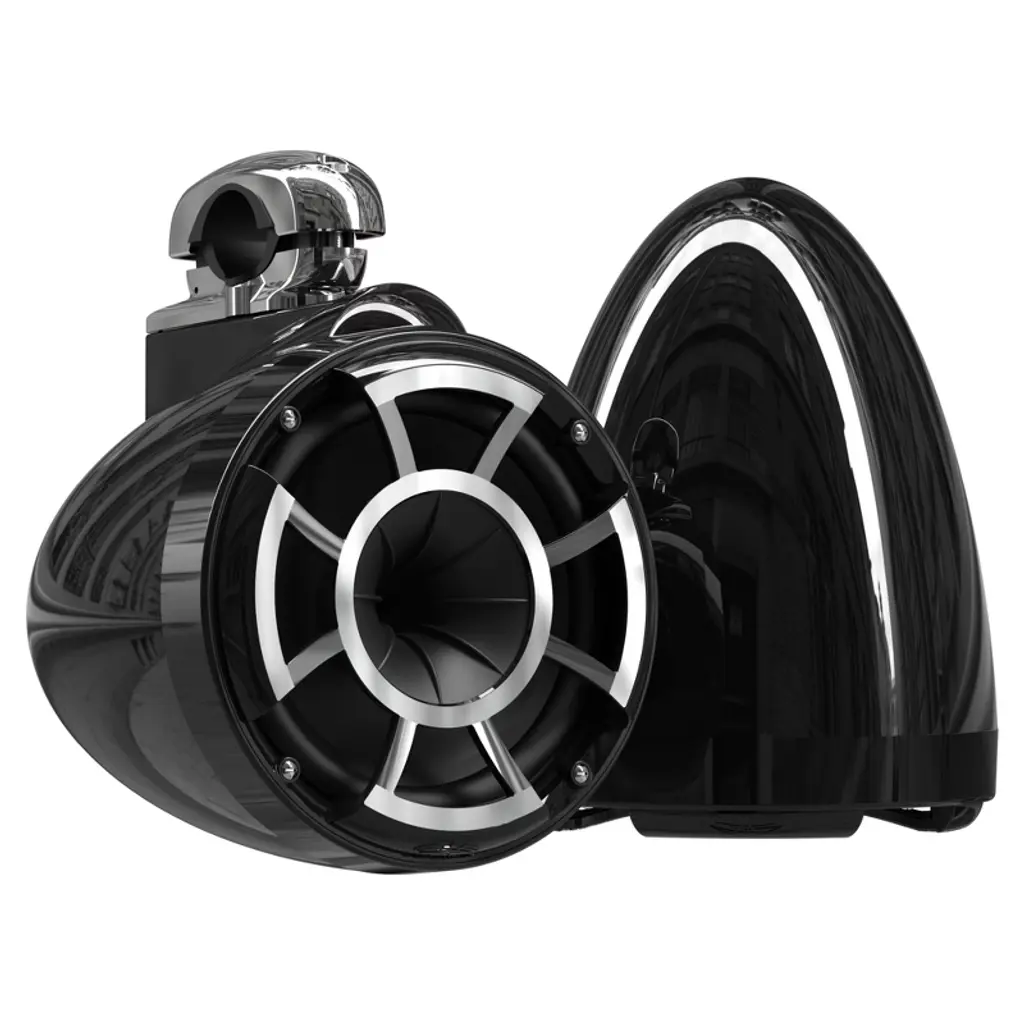 Wet Sounds Icon 8-b Fc Sa V2 - Black Icon8 - Icon Series 8" Coaxial Tower Speakers, Pair With Silver Aluminum Fixed Clamps (Pair)