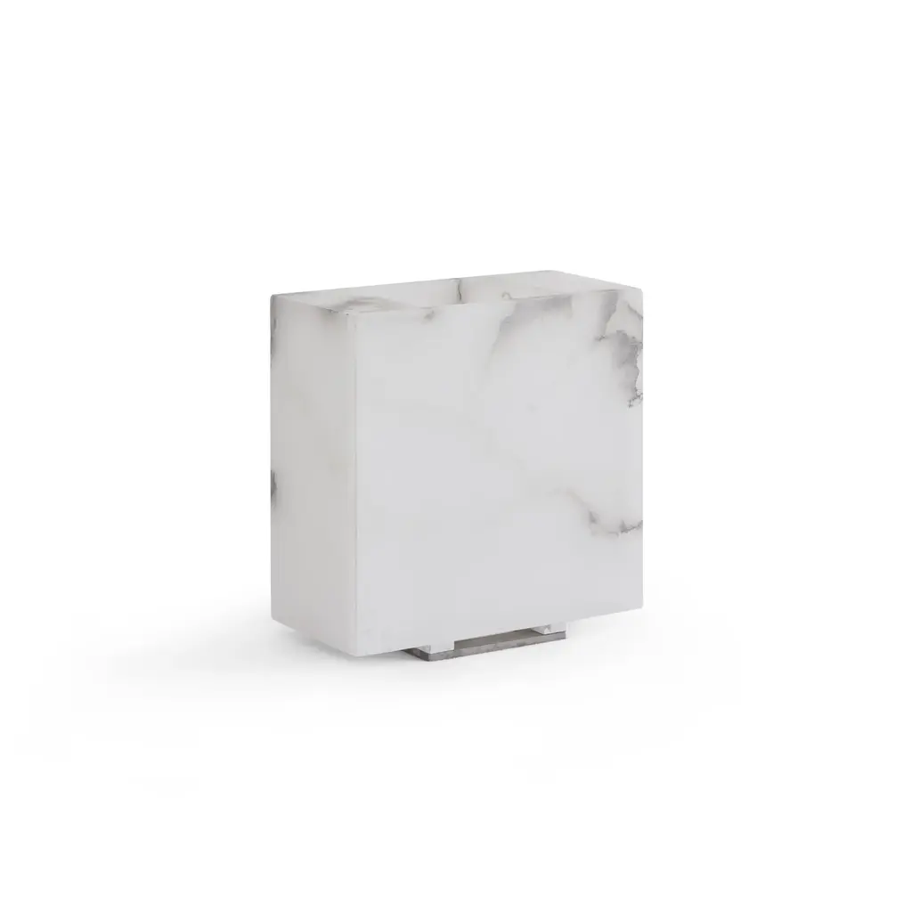 Create a serene, ambient atmosphere with our White Alabaster Table Lamp from Dema Cubo. Meticulously crafted from Volterra alabaster, each lamp features a sleek stainless steel finish, adding a touch of elegance to any room. Experience the luxurious glow of this premium lamp in your home.