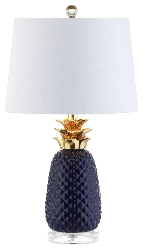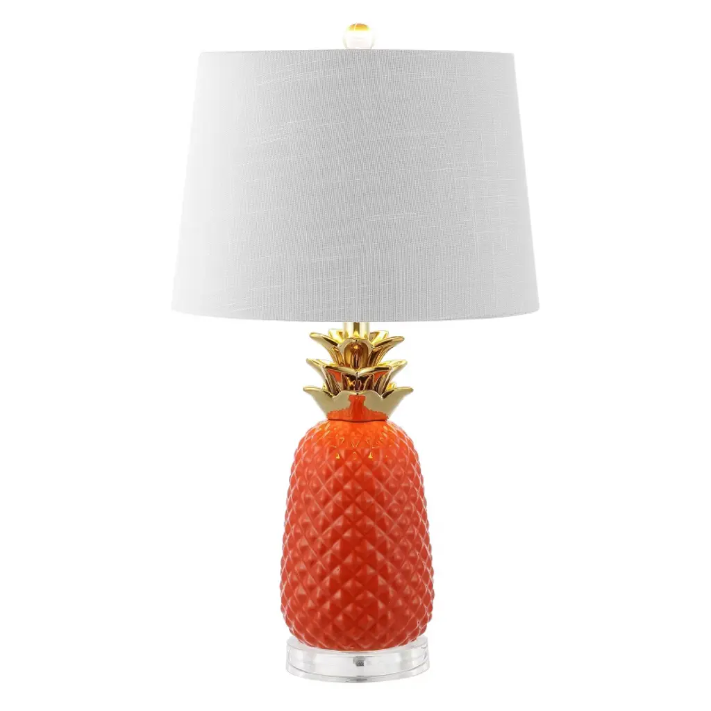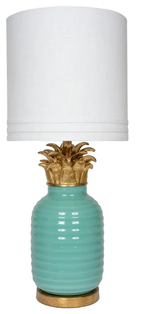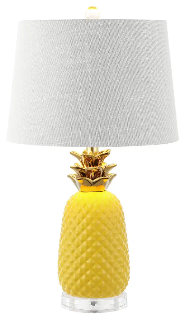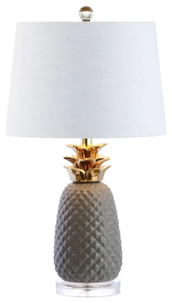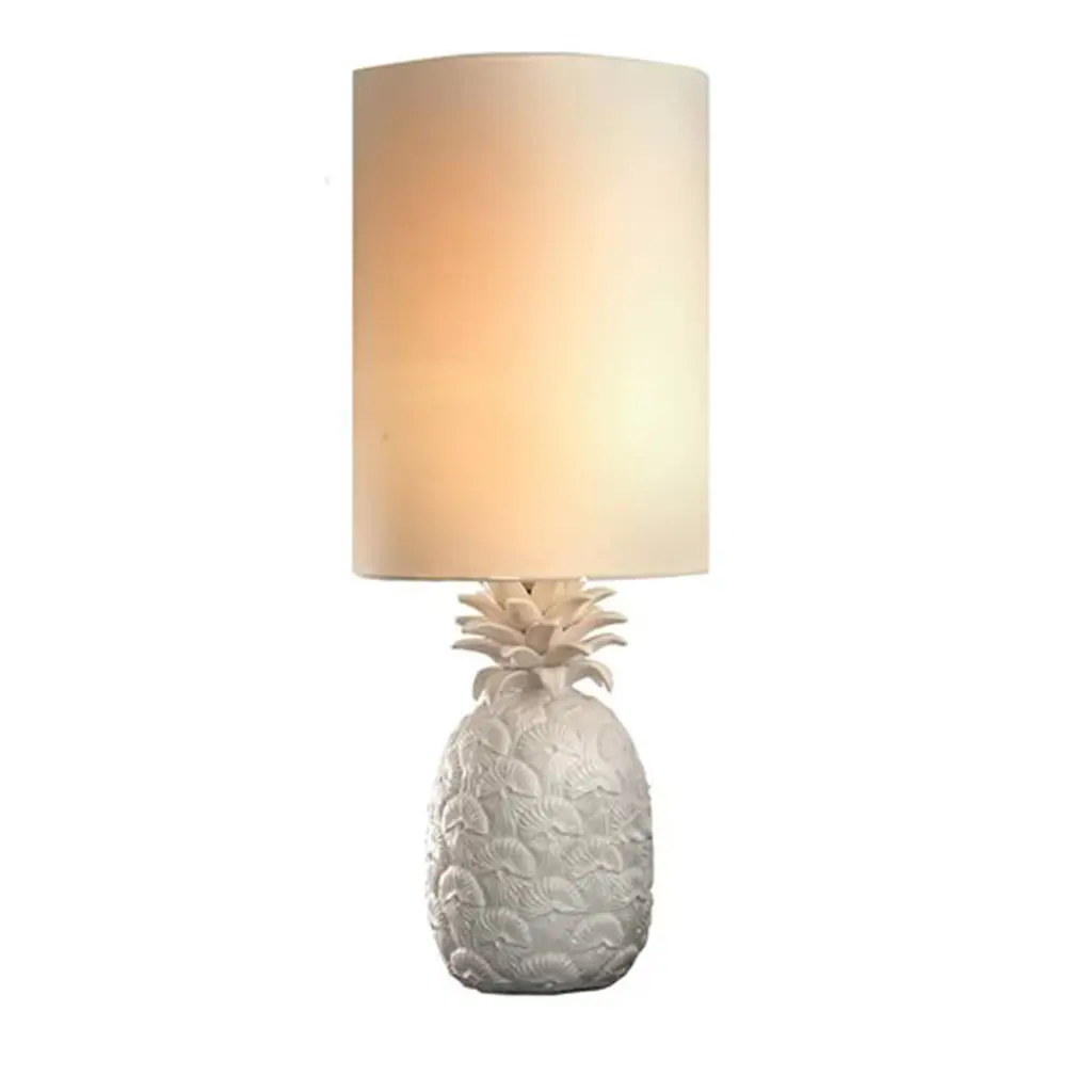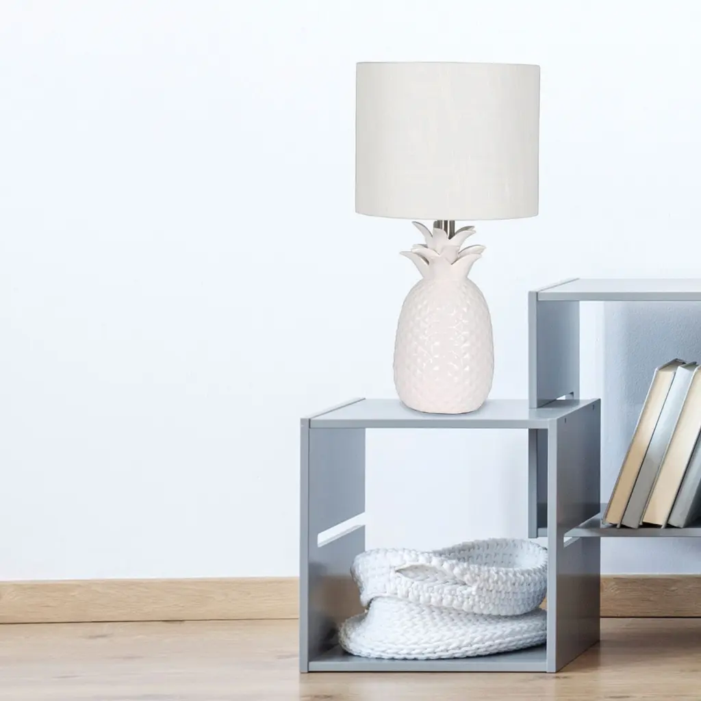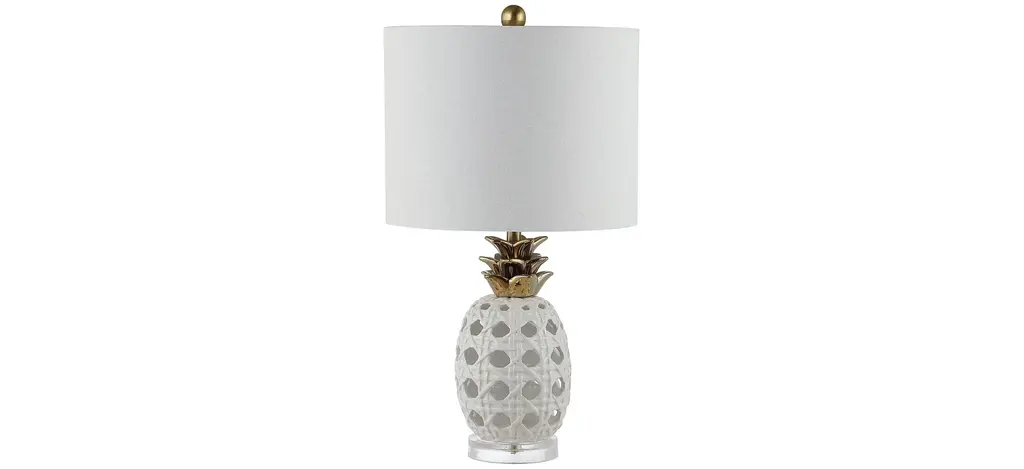 A tropical accent that lights up your decor, this pineapple-shaped table lamp is a welcoming choice in any space. Made with a glossy white ceramic base and white textured fabric shade, this monochromatic piece from Adesso adds a crisp, cheerful finish to any tabletop or counter in your home.