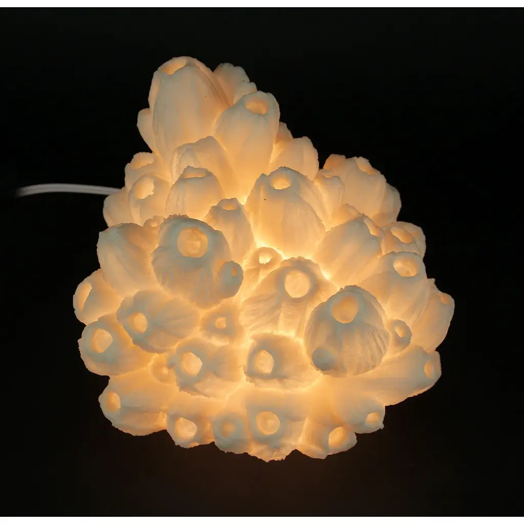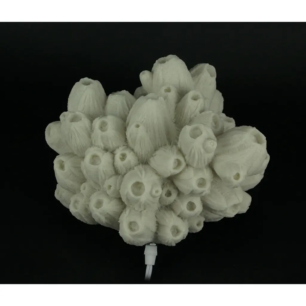 Bring the elegant beauty of the coast to your home with this beautiful white Tube Coral sculpture that doubles as an accent lamp. Cast in resin for a delicate and realistic appearance, it has a true to life texture and gives off a relaxing and inviting warm translucent glow when lit. It will create sophisticated drama with artistic flair in any room of your home as an eye-catching decor piece that brings aesthetic design to homes, hotel rooms and more. This 9.75 inch long, 8.5 inch wide, 8 inch high coral lamp is UL approved and accepts one type A bulb up to 40 watts, not included. Easily turn it on or off via the thumbwheel switch on the 70 inch long cord. Coastal styles never go out of season, and even if you don't live by the water, you can enjoy the coastal beauty this lamp brings.