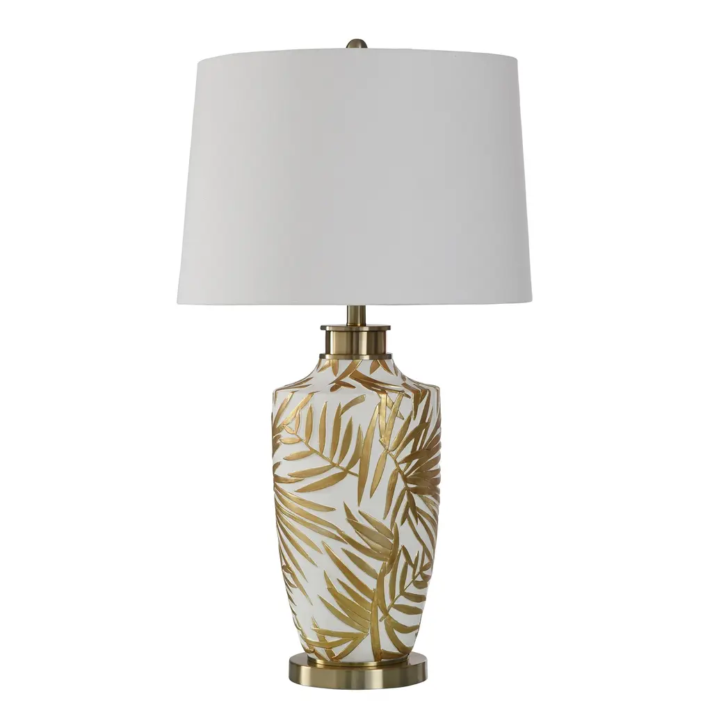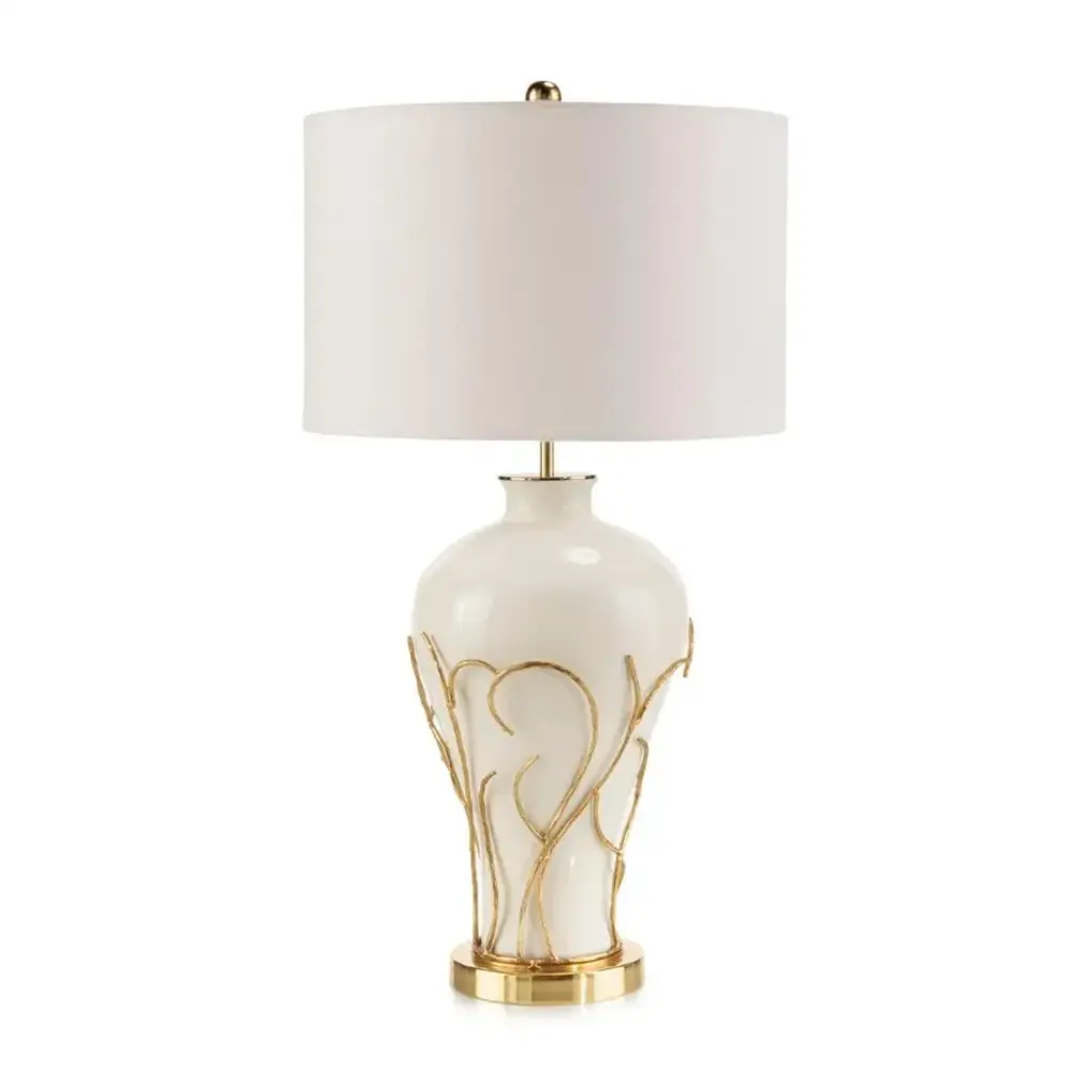 The classic profile of the White Flame Table Lamp showcases a gorgeous metallic body in a white enamel finish, bestowing the piece with a lustrous sheen that greatly elevates an interior space. Breathtaking curls of polished brass delicately embrace the piece, evoking the sporadic forms of a roaring flame. This stunning turnkey lamp is gently perched atop a rounded polished brass base, seamlessly matching the flames, neck hardware, and rounded finial at the apex.