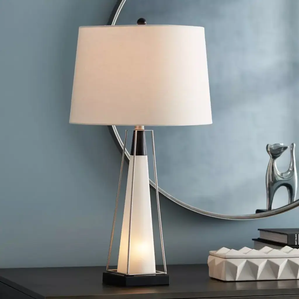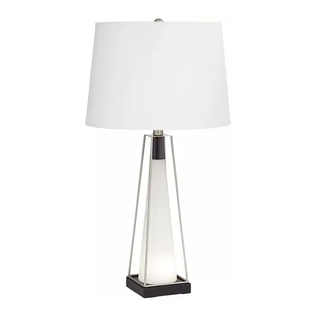 White Glass Table Lamp With Led Nightlight - 15" X 28" - 15" X 28" - White