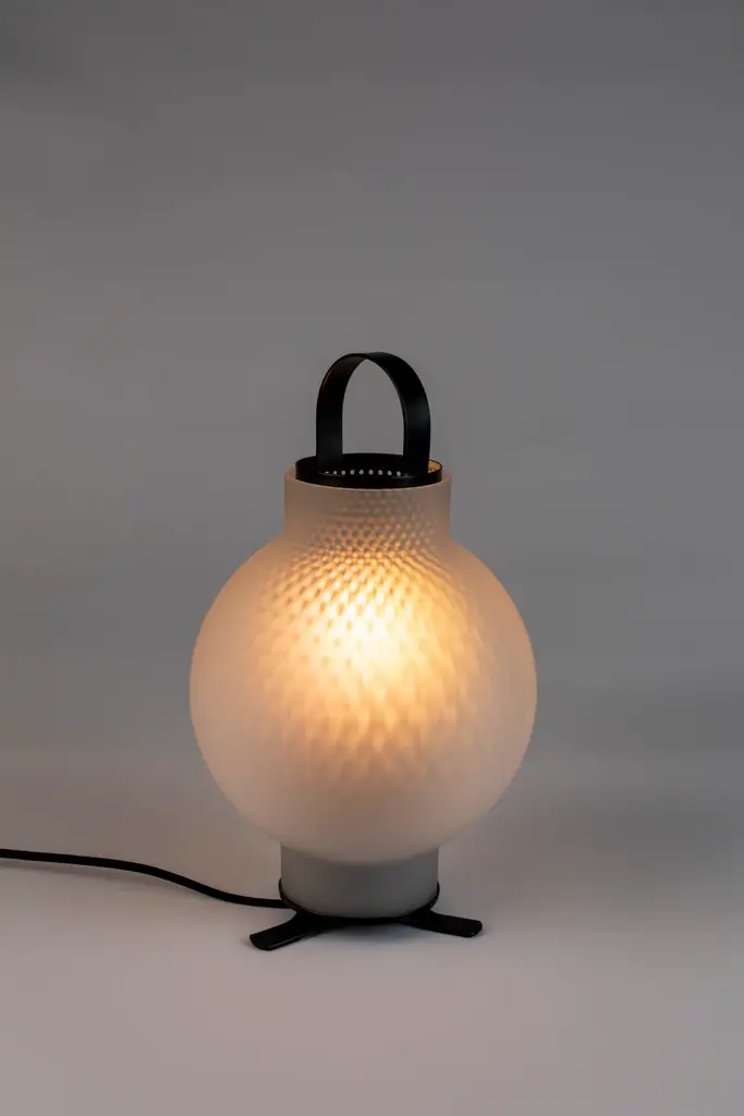 The magic of frosted glass remains beautiful. In the Nomad table lamp, it is responsible for the beautiful diffused light. The black metal mesh interior further enhances this scattering effect of the light. Nomad is a modern reinterpretation of the classic oil lamp. He brings just as much atmosphere but does so with modern techniques.