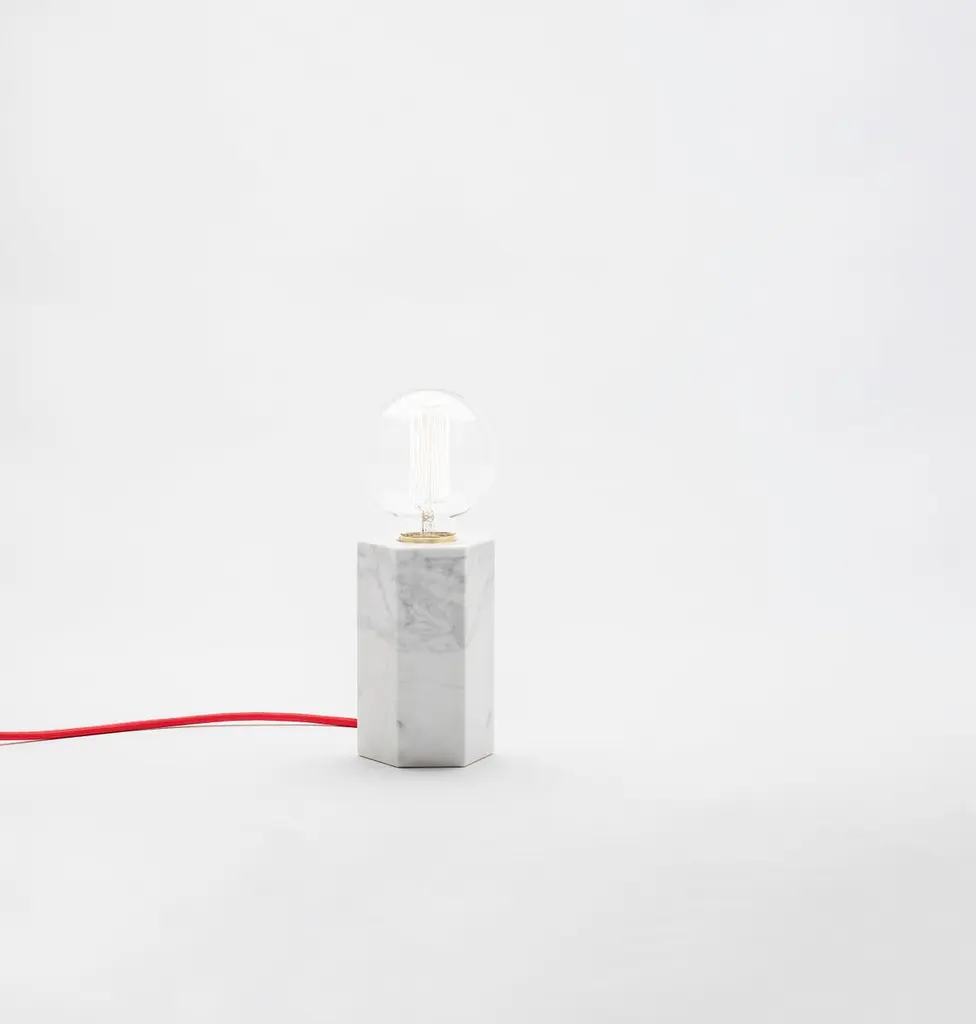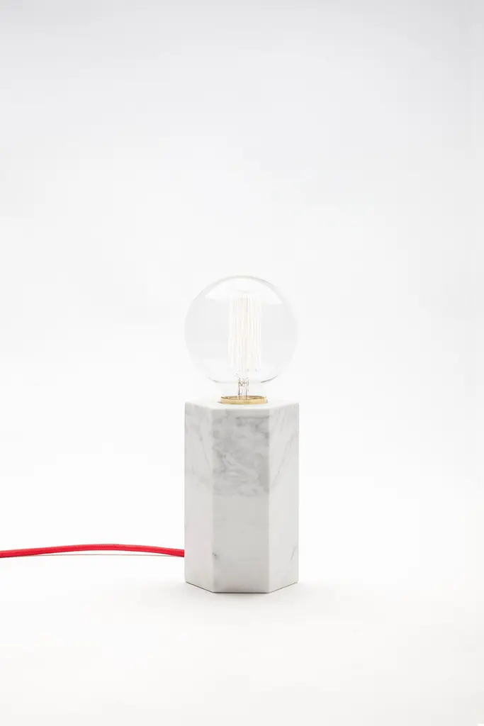 Black hex lamp by Joseph Vila CapdevilaMaterial: Carrara marble, red cordDimensions: 8.5 x 15 x 8.5 cm9.5 x 24.5 x 9.5 cmCord 1.5 mWeight: 2.2 kg Aparentment is a space for creation and innovation, experimenting with materials with the goal to develop robust, lasting and timeless designs.Aparentment collections feature contemporary and casual sophistication. Parts made of noble materials such as Carrara marble, wood and brass play with the concepts of style and uniqueness.Josep Vila captures in his collections the creative discourse that motivates him as a professional. On the one hand, printing his aesthetic character in accessible designs with an artistic touch, playing with the metaphor & contradictions (like a Brique made of marble), transgress without losing the sophistication and looking for the opportunity to offer something different, working from design to production with local craftsmen and manufacturers.Josep Vila Capdevila is the founder and Head Designer of Aparentment, he graduates in Industrial Design by Elisava University in 2001. He postgraduates in Photography in Elisava and 3D Design Engineering at UPC. His multiple interests lead him to get involved with advertising, fashion, photojournalism and even music.In addition to his work under Aparentment, he was a teacher of Industrial Design at “Escola d’Art i Disseny de Terrassa” and won a LUX bronze award for ‘Best advertising photograph’.