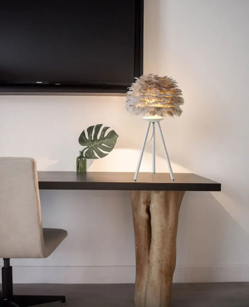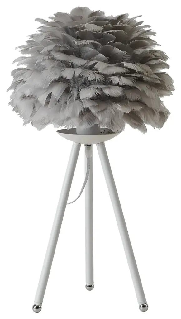 This exquisite table lamp has a white iron base with three legs, and there is a goose feather ball in grey color on the top of the table lamp. It also comes with an ON/OFF switch. This table lamp is great for chair side reading or general room illumination LightBulb Included: No Number Of Bulbs: 1 Bulb Type: E26 Max Wattage: 60