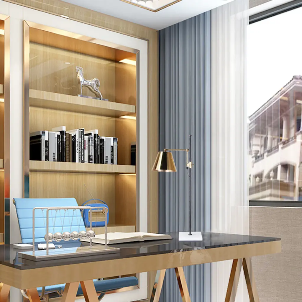 White Marble Base With Brass Shade And Black Rod Table Lamp