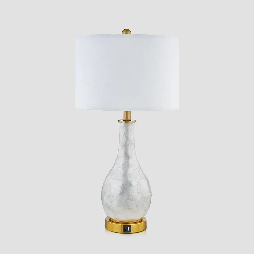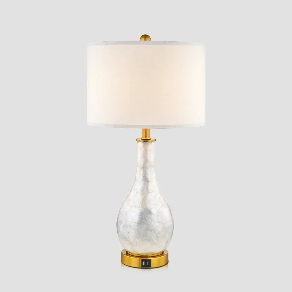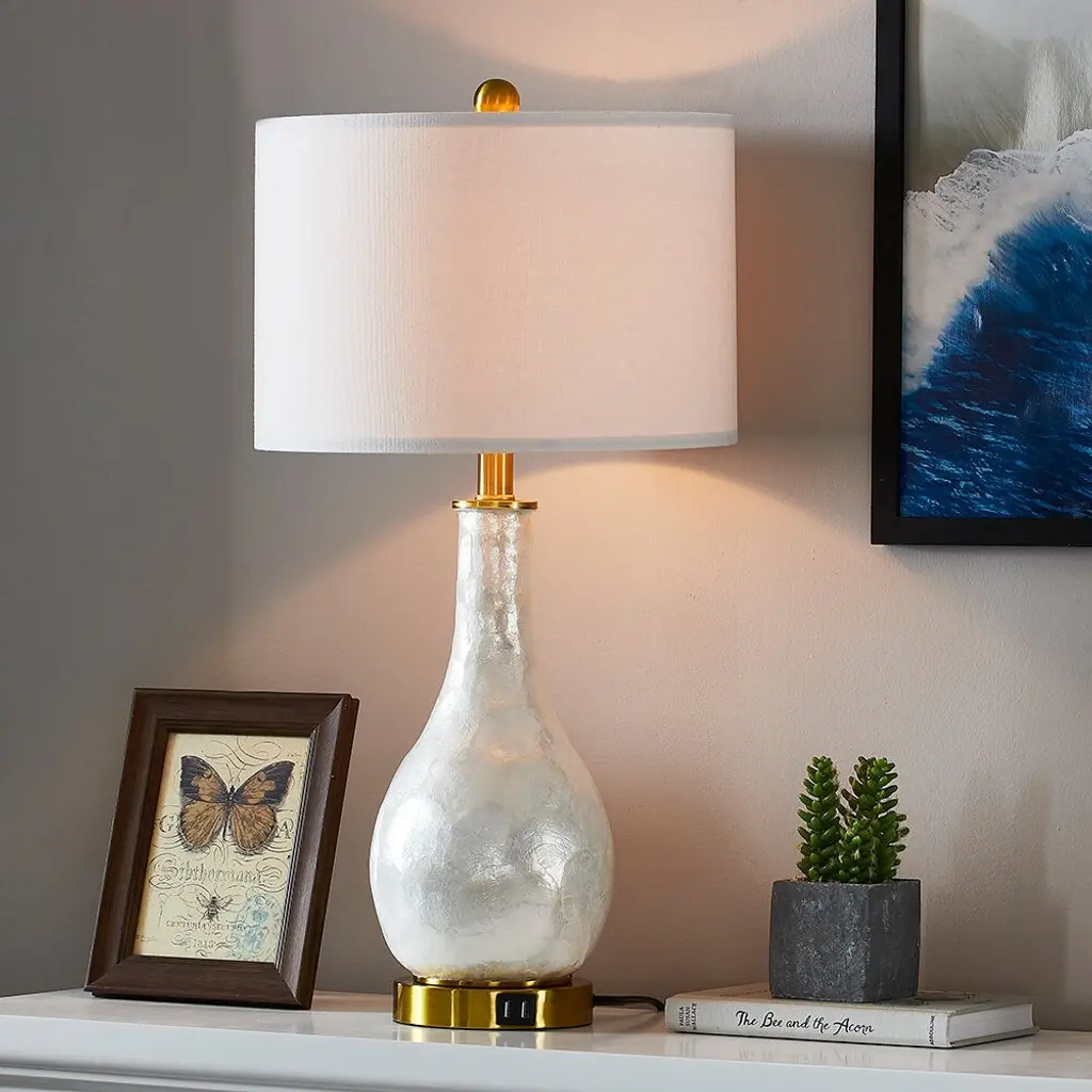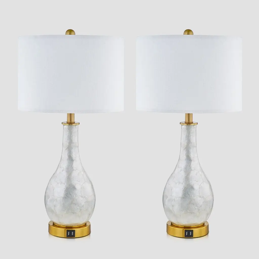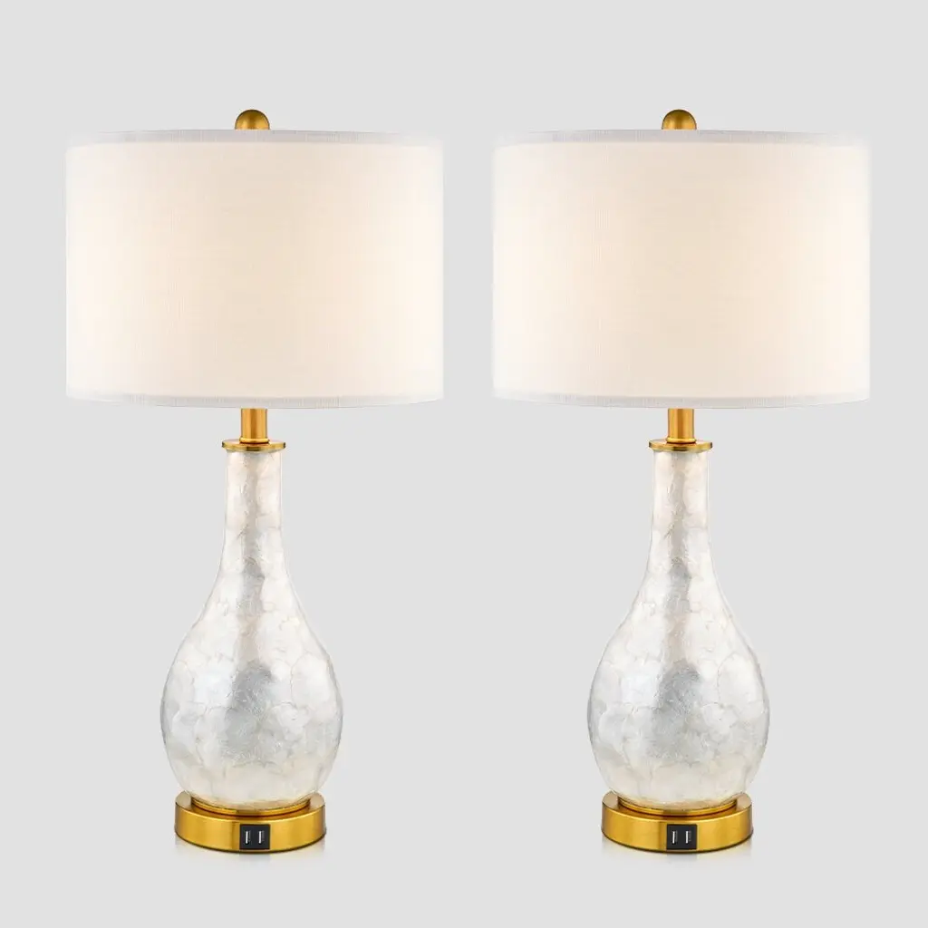 White graceful seashell table lamps. Modern sophistication meets the gentle allure of nature. They are not just lamps, they are a symphony of elegance and practicality, designed to enhance your living space. The table lamps apart is their exquisite lamp body, meticulously crafted from natural shell. This exceptional material brings a touch of the outdoors inside your home, casting a soft and soothing glow that infuses tranquility into your environment. The interplay of light and natural textures creates an atmosphere that is both relaxing and visually captivating. Assembling these lamps is a breeze, and they seamlessly fit into any room arrangement. Whether it's your bedroom, living area, or office space, the table Lamps effortlessly blend with your decor, elevating the ambiance with their presence. Adorned with premium linen lampshade, these table lamps exude style and elegance. The pristine white lampshades feature built-in insulation, ensuring a comfortable visual experience while diffusing light tenderly. Bid farewell to eye fatigue as these lamps bestow a gentle radiance that's as kind to your eyes as it is enchanting to your space. These lamps resonate with a unique and stylish artistic aura, infusing your living space with a rustic, nature-inspired charm. Let your home be adorned by these decorative art pieces, a harmonious fusion of light and nature that evokes a sense of tranquility and the beauty of the great outdoors.Overview of features: