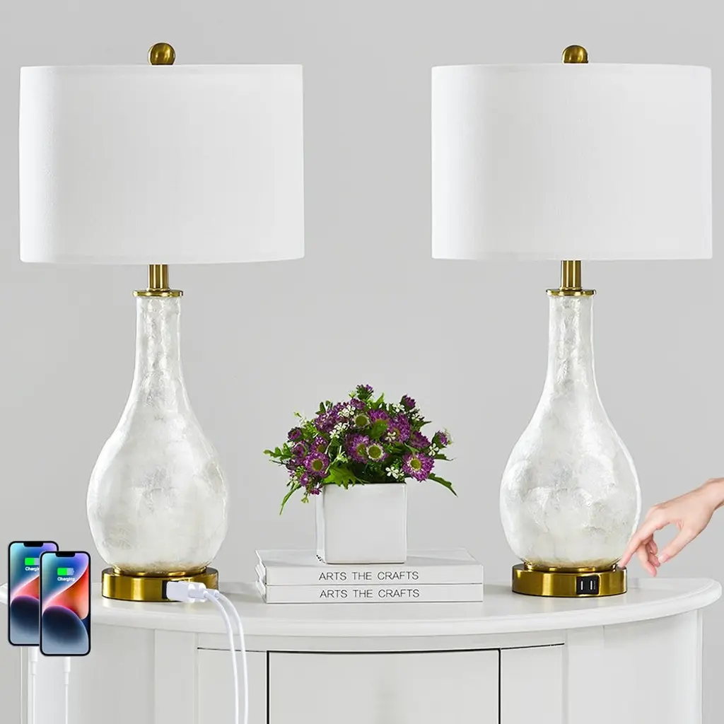 White Seashell Table Lamp With 3-Way Touch Dimming Switch And Dual Usb Charging Ports (Set Of 2) - 13'' X 13'' X 25.5'' (L X W X H) - White