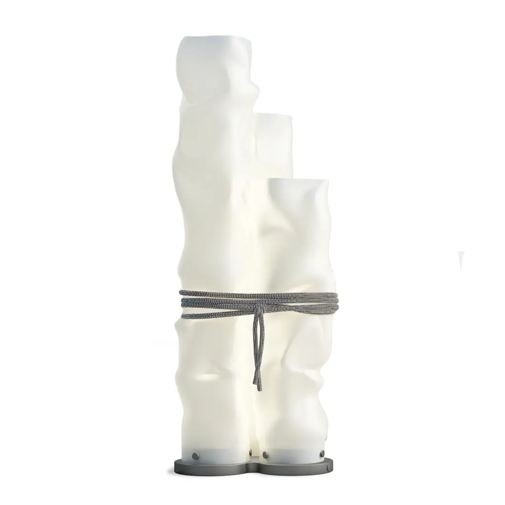 Introducing the White Tubular Table Lamp by Contardi Baggy, part of the playful yet elegant Baggy collection. Inspired by oversized trousers, Baggy lamps allow for creative freedom through different size modules. The double-satin polycarbonate diffuser and gray base add a touch of luxury, while the soft textile cord and suspended version elevate the design.