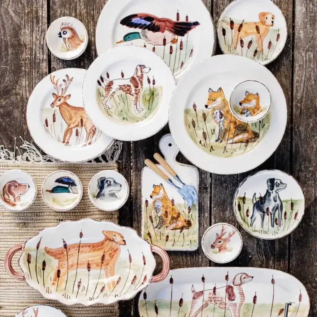 The Wildlife Fox Small Cheese Board captures the charm of the outdoors with its handpainted fox design. Crafted by Italian artisans, this board is perfect for serving cheese or appetizers, adding rustic elegance and a touch of wildlife whimsy to any gathering. Since 1983, Vietri has specialized exclusively in Italian handcrafted ceramics, stainless and pewter flatware, mouth blown glassware, lamps, urns and planters. Families of artisans with 3 or 4 generations of history create these special pieces using centuries-old techniques. The subtle color from a paintbrush and the curving stroke of the artist's hand are never repeated in quite the same way, making each piece truly unique.