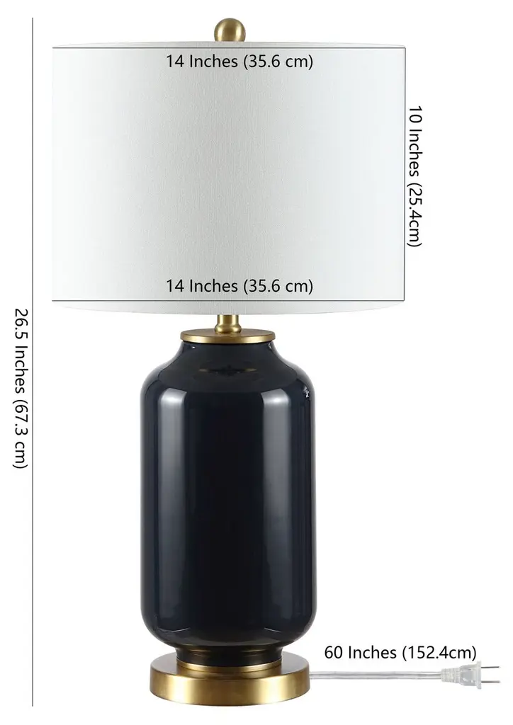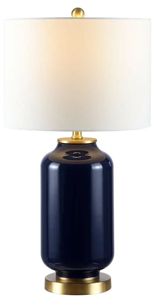 Navy, gold, and white: Color combinations don't get much more iconic than that. Here, the lamp's blue glass body is set off with golden accents and topped with a crisp white cotton shade.