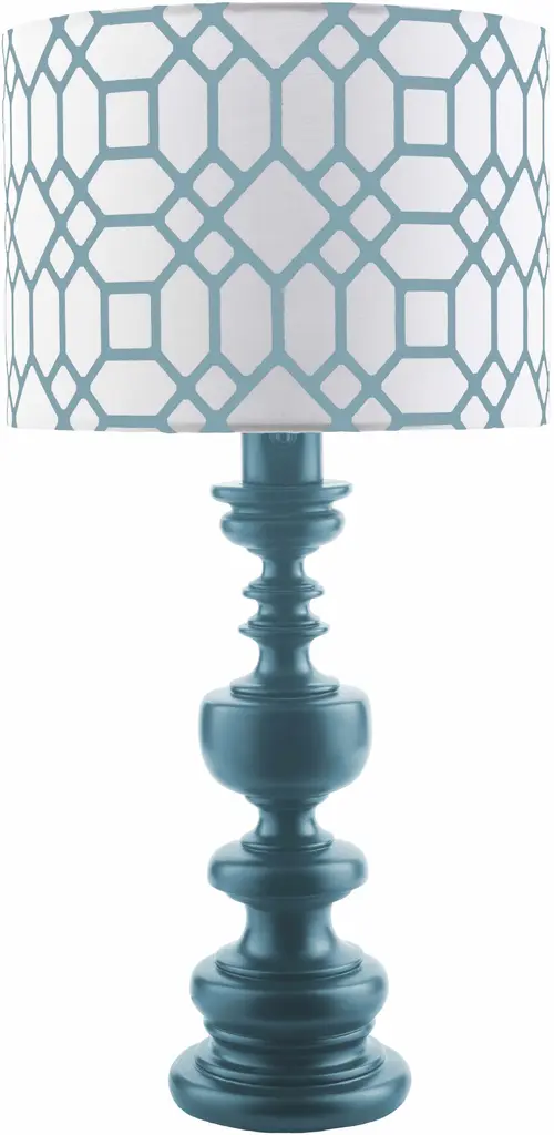 Love the new trend of geometrical patterns? Not sure how to bring it in your home without over doing it? We've got the answer, our Wilson Table Lamp. The blue print on the polyester drum shade allows you to subtly follow the decor trend. All while the blue resin base brings an extra pop of boldness to the room.
