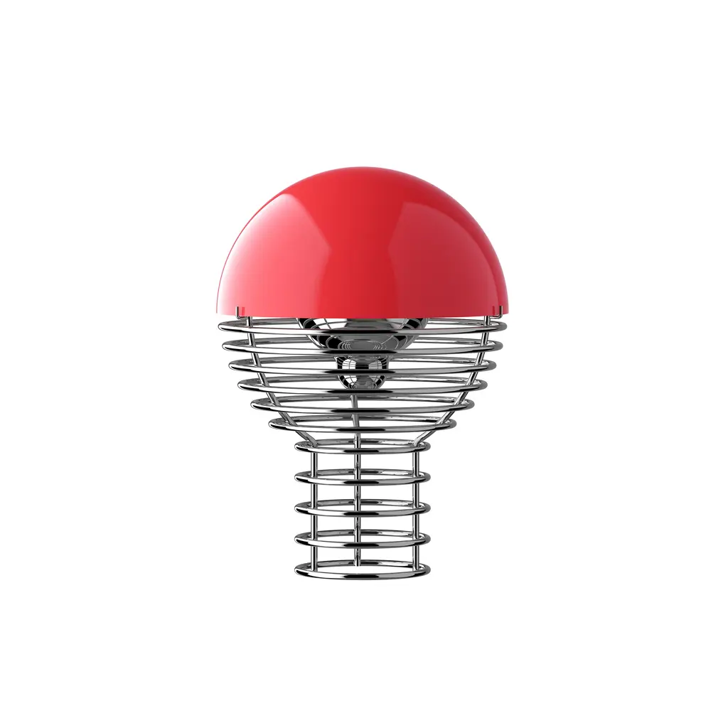 Verpan brings Verner Panton's iconic 1975 Wire Lamp into the contemporary era with this clever, portable edition. Capturing the original's sculptural spirit, this cordless version features the signature open wire frame and a luminous dome-like shade, delivering a soft, ambient glow. With the freedom to move anywhere, it brings a piece of Danish design history to any modern setting, whether used indoors or on a covered patio, for a touch of timeless style. Highlights