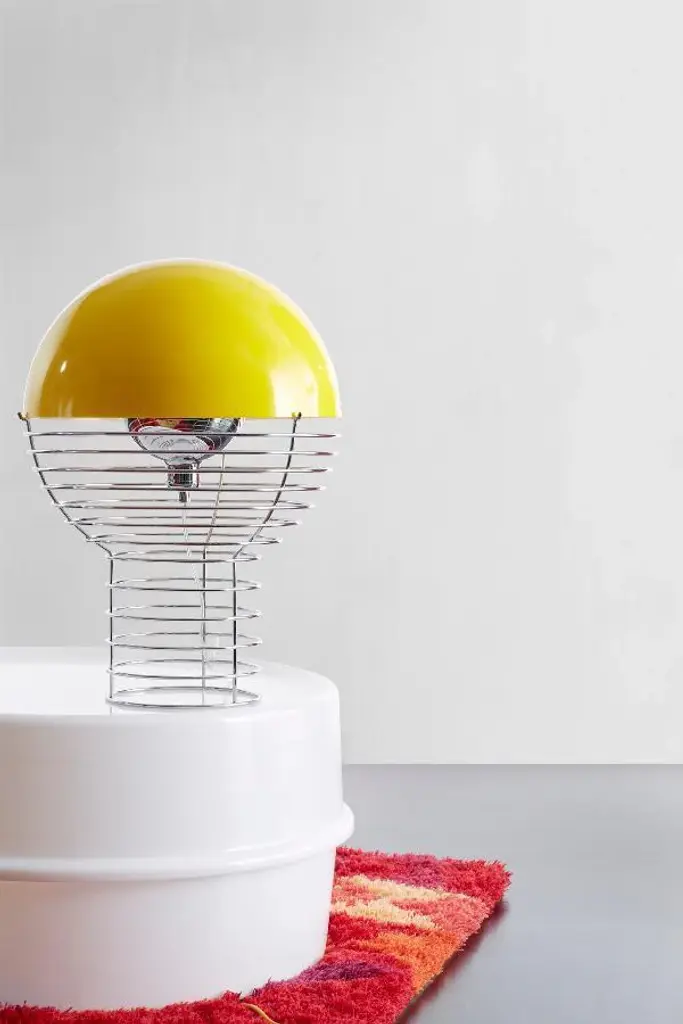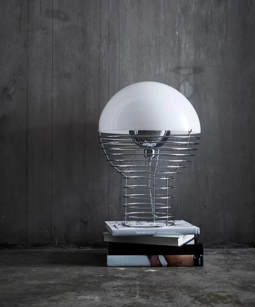 Table lamp with a cylindrical wire framework that widens into a hemisphere at the top. Cord: 220 cm (86.6") transparent with on/off switch. Assembly instructions available here .
