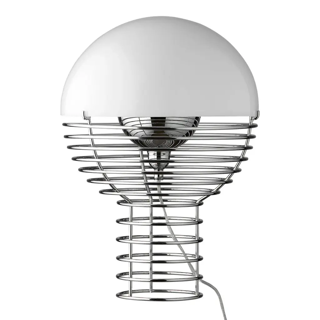 Table lamp with a cylindrical wire framework that widens into a hemisphere at the top. Cord: 220 cm (86.6") transparent with on/off switch. Assembly instructions available here .