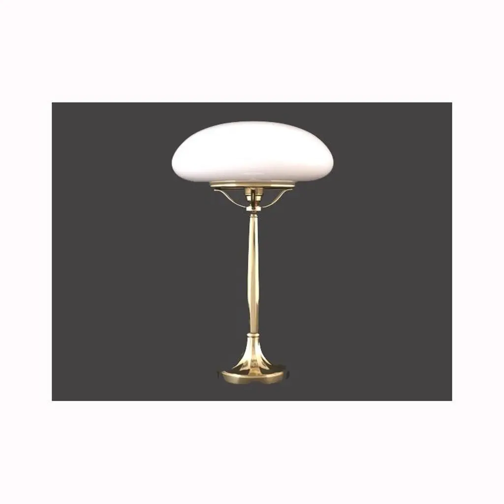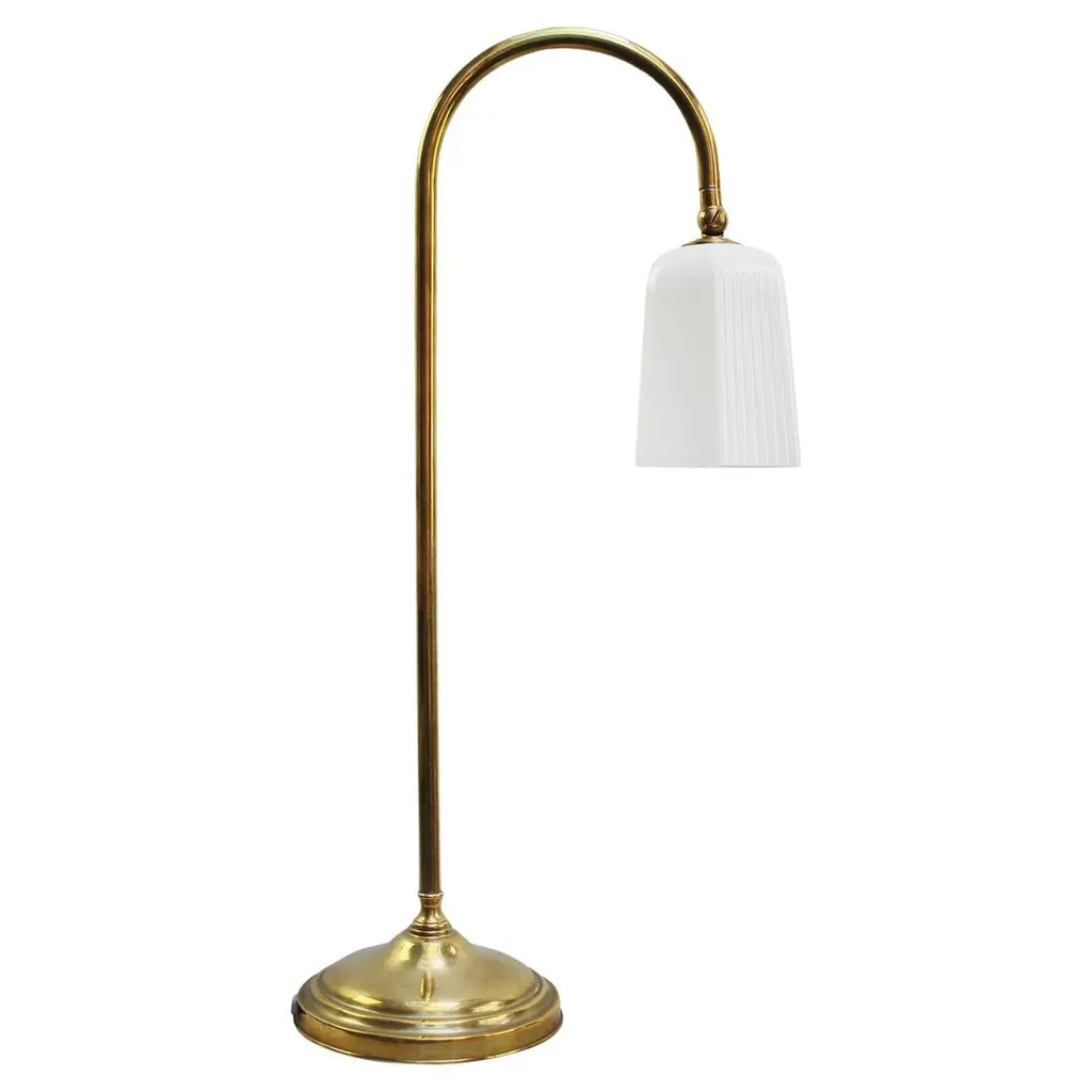 Table light with opaline glass shade, handformed and sandcasted brass parts.Most components according to the UL regulations, with an additional charge we will UL-list and label our fixtures