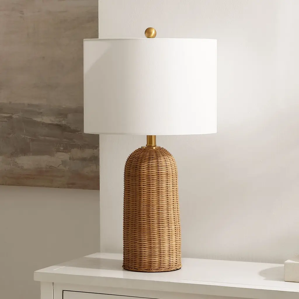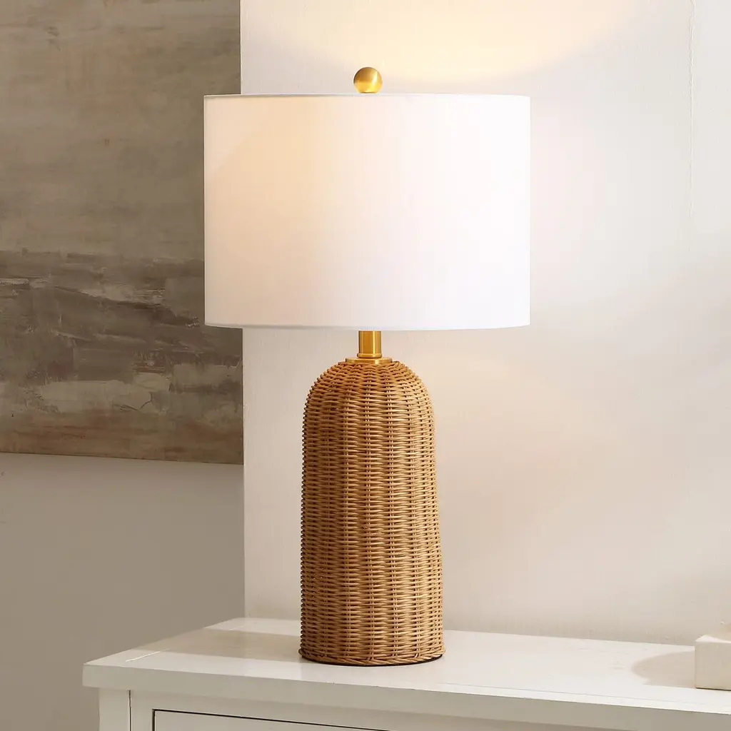 Wolly 25.5" Rattan Table Lamp, Natural/brass