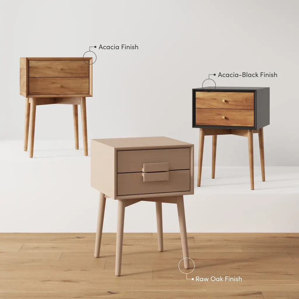Wood Mid-Century Nightstand Acacia