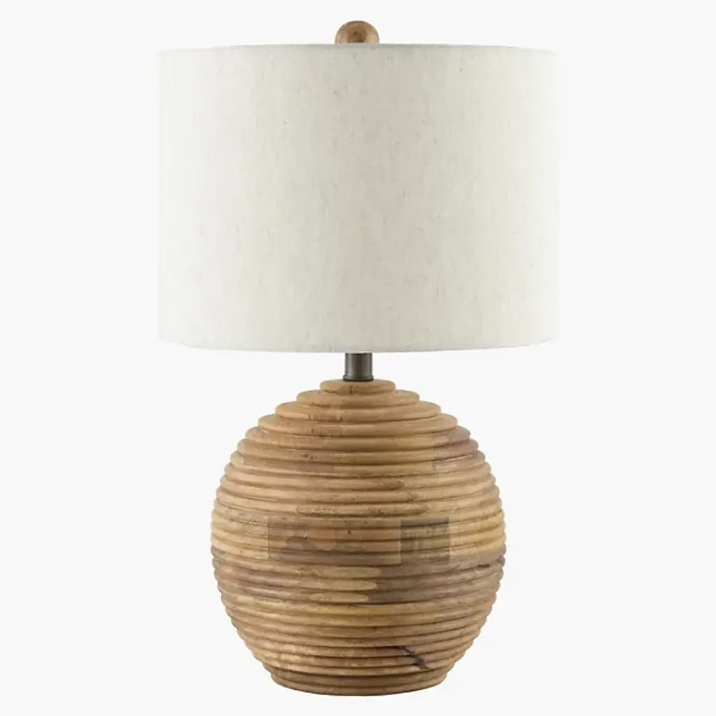 Crafted in India of mango wood with a smooth polished finish, our teardrop-shaped table lamp adds a natural element to any room. Inherent variations in the wood grain make each piece truly unique.