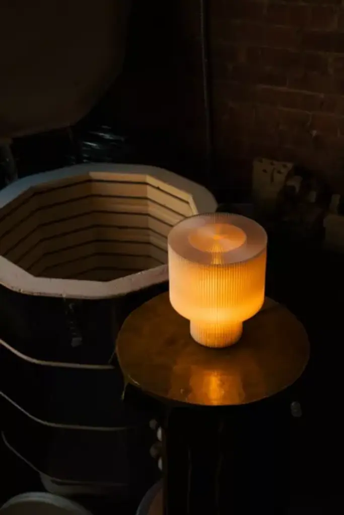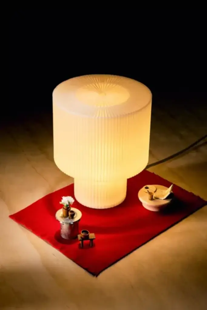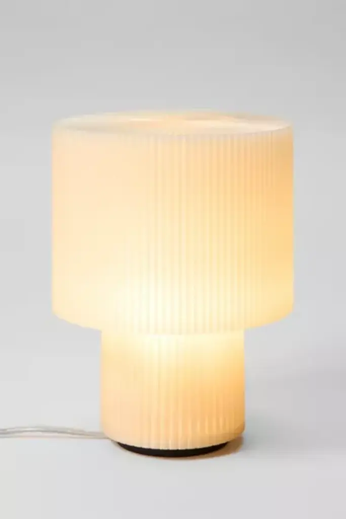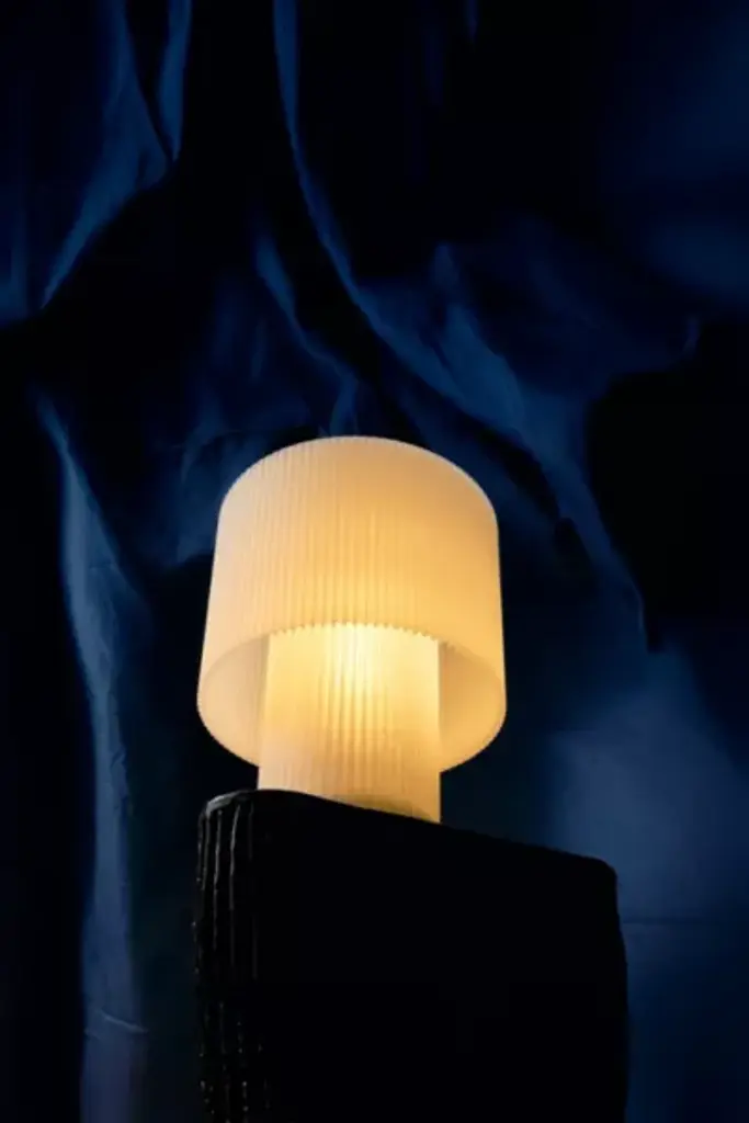 Please note that all items are made to order in Brooklyn, NY and require a 1-2 week lead time before they can be shipped. The Drum collection was inspired by images captured by Bernd and Hilla Becher of revolutionary technology, as well as highly ordered natural formations – mushroom gills, flower petals, and refracted light. Christopher Merchant sought to combine these inspirations in a classic lamp profile while expressing the unique character and capabilities of 3D printing, a technological revolution in itself. Also available as a pendant and mini table lamp. **Content + Care** \- Recycled PLA \- TPE power cord \- 2W E12 Base, 2700K (soft warm white) \- LED bulb only \- Wipe down damp microfiber cloth if necessary (unplug lamp before doing this) \- This is a fragile item - treat with love! \- Imported **Size** \- Dimensions: 9" H x 7" D \- Weight: 2 lbs
