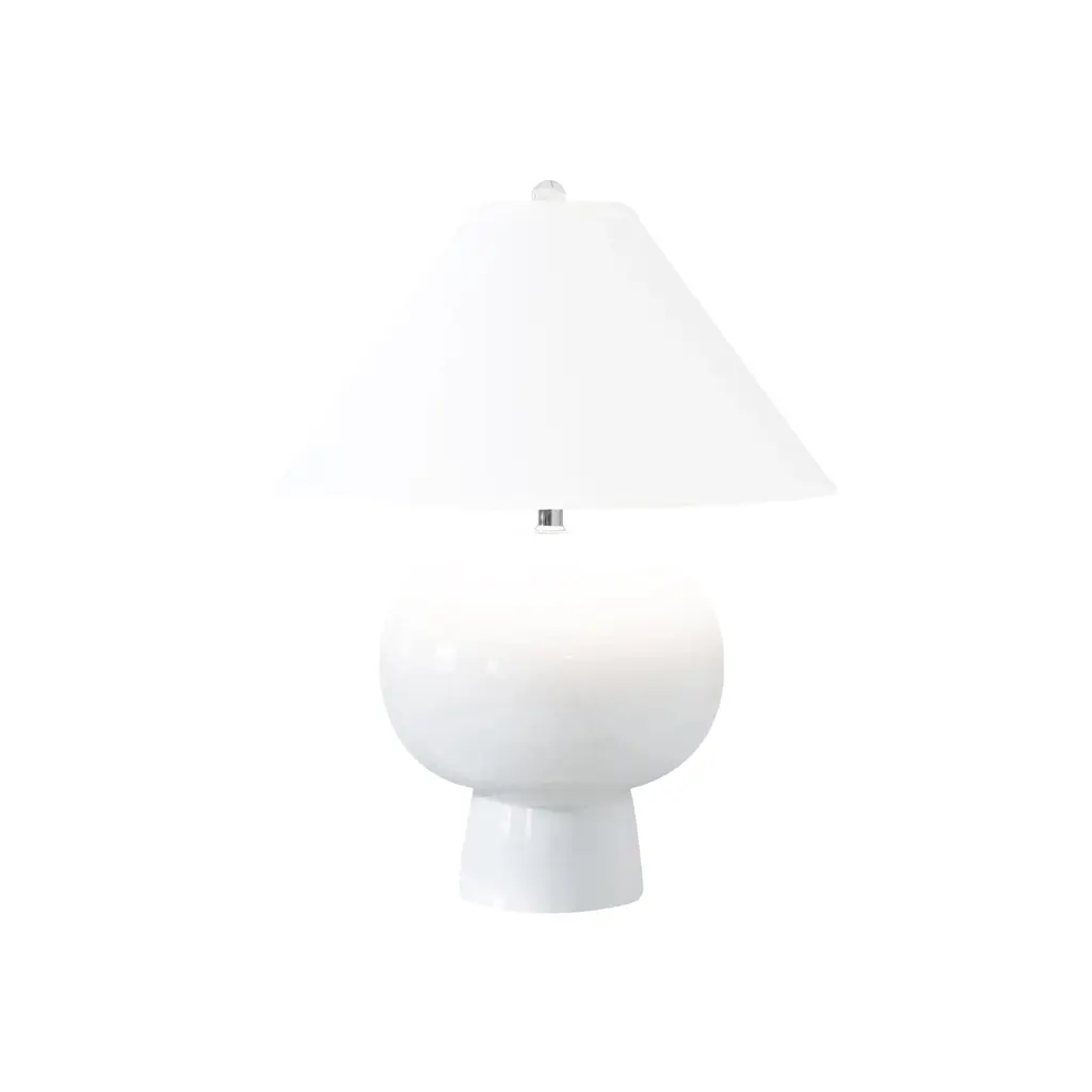 This bulb shaped table lamp by Worlds Away is a modern take on a timeless classic. The Ceramic base is offered in white, blush pink, light grey or teal green. Topped with a crisp white linen Coolie shade, the Annie lamp will certainly brighten any room.