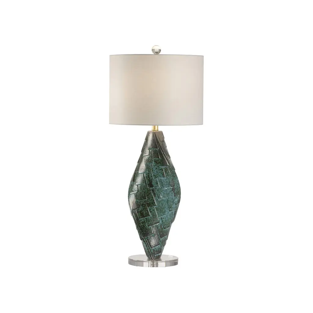 The extraordinary Bianca table lamp by Worlds Away is a modern take on a timeless classic, featuring a distinctive urn-shaped base with hand-painted tole in a brilliant green malachite. Accented with gleaming gold edges and floating atop a four leg base, Bianca is a stunning addition to brighten any room.
