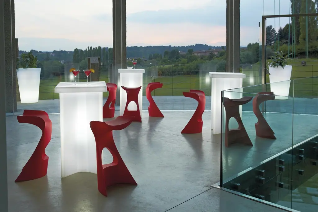 X2 Jet Black Table by SLIDE StudioDimensions: D 60 x W 60 x H 110 cm.Materials: Polyethylene.Weight: 15 kg.Available in different color options. A glass top is also available. Prices may vary. This product is suitable for indoor and outdoor use. Available in standard and lighted versions. Please contact us.Our stories happen in places precious to us. SLIDE was born from the desire to produce furniture and light to create the perfect atmosphere that highlights emotions.Design is inspiration, surprise, joy. It's the amazement of seeing something unique for the first time. It's creating spaces to feel good and live surrounded by beauty. It means giving a personal imprint to indoor and outdoor spaces. It means choosing your ideal element that is the perfect setting for emotions and experiences, which become indelible memories. The founder Giò Colonna Romano knows this well, combining his fervent imagination with thirty years of know-how in the processing of plastic resins, giving birth to SLIDE in 2002. The first note of amazement is the luminous furniture, which immediately became a must have in the world of events. Since 2015, his son Marco Colonna Romano has taken over the reins of the company, with the same desire to grow and innovate as his father. Thanks to a new panache and the team of young people it surrounds itself with, SLIDE becomes a beloved company for outdoor furniture: new shapes, materials and tactile textures have won the hearts and ideas of architects and interior designers around the world. SLIDE has thus created complete collections and furnishings, with new shapes, whose lines arise from collaboration with internationally renowned designers of the caliber of Alessandro Mendini, Paola Navone, Stefano Giovannoni, Fabio Novembre, Marcel Wanders, Karim Rashid, Marc Sadler, Francesco Favaretto and Marcantonio.New materials were chosen and inserted, initially soft and rigid polyurethane, and then comfortable cushions, waterproof fabrics, tactile textures ideal for completing the polyethylene furnishings with taste and class. But SLIDE does not forget its first essence, lighting: in recent years it has developed a line of much more technical lamps for large areas, essential in shape but with great visual impact. For the first time, Slide has managed to give an artisanal twist to an industrial process: to meet the increasingly high demands of living, the production creates non-replicable shades, in which every small imperfection enhances the industrial process and makes each piece unique . Because Slide's strength has always been the careful reading of the market, the creation of something that didn't exist and which then became necessary: here Slide continues its production in Buccinasco, on the outskirts of Milan, but its name and its products reach more than 130 countries around the world.