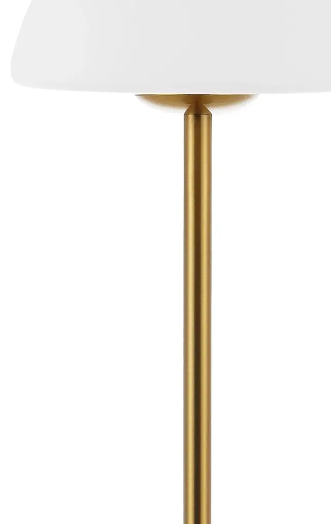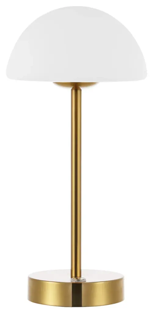 Add mid-century flair to your bar or vanity with our Art Deco-inspired accent lamp. This cordless, rechargeable mini lamp is the perfect modern accent for your dining room, living room, bedroom, or entry. A single LED bulb in a frosted glass globe provides plenty of light. Clean lines and a high-quality finish add a glam touch.Features:• This cordless mid-century style accent lamp features a frosted dome shade and a vintage brass-gold finish• Cordless, portable lamp has a rechargeable battery for convenient accent lighting on a bar, console, or vanity• Savor the warm ambient light produced by this contemporary combination of a frosted glass shade and LED bulb• Integrated 2.5W LED bulb• Color: Brass Gold with white shade• Body Material: Metal• Includes: One (1) lamp• Assembly RequiredDimensions:• Lamp: 12.5 inches high x 6 inches wide x 6 inches deepAbout us:You see a lamp.We see a decorative work of art.A perfectly curved shade casts a dramatic shadow on a floor. A silk cord you never want to hide. Compatible with LED lightbulbs: as easy on the environment as they are on the eyes. The JONATHAN Y Lighting collection considers every detail from impeccably sourced materials to designer styling. And our prices are so attractive, we''ve transformed a functional necessity into a fashion accessory.JONATHAN Y Lighting - a fashion revolution in home decor.