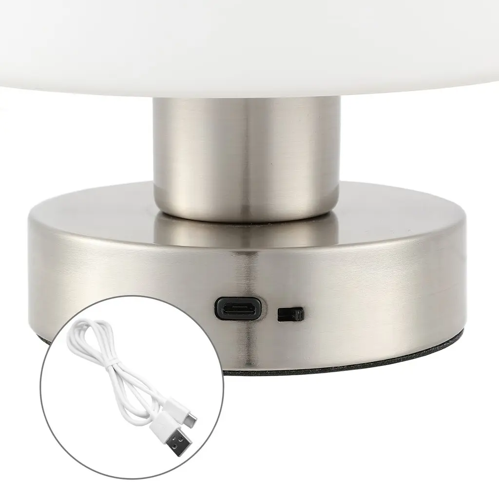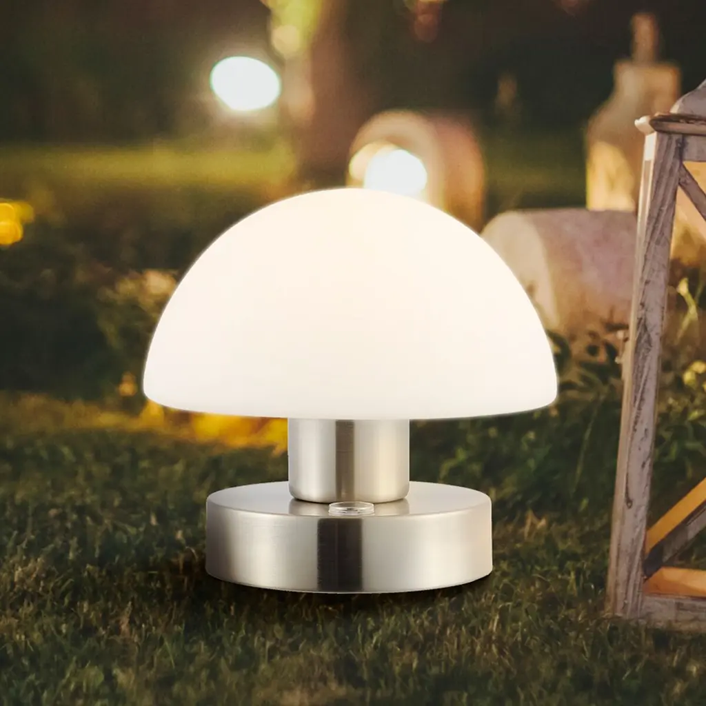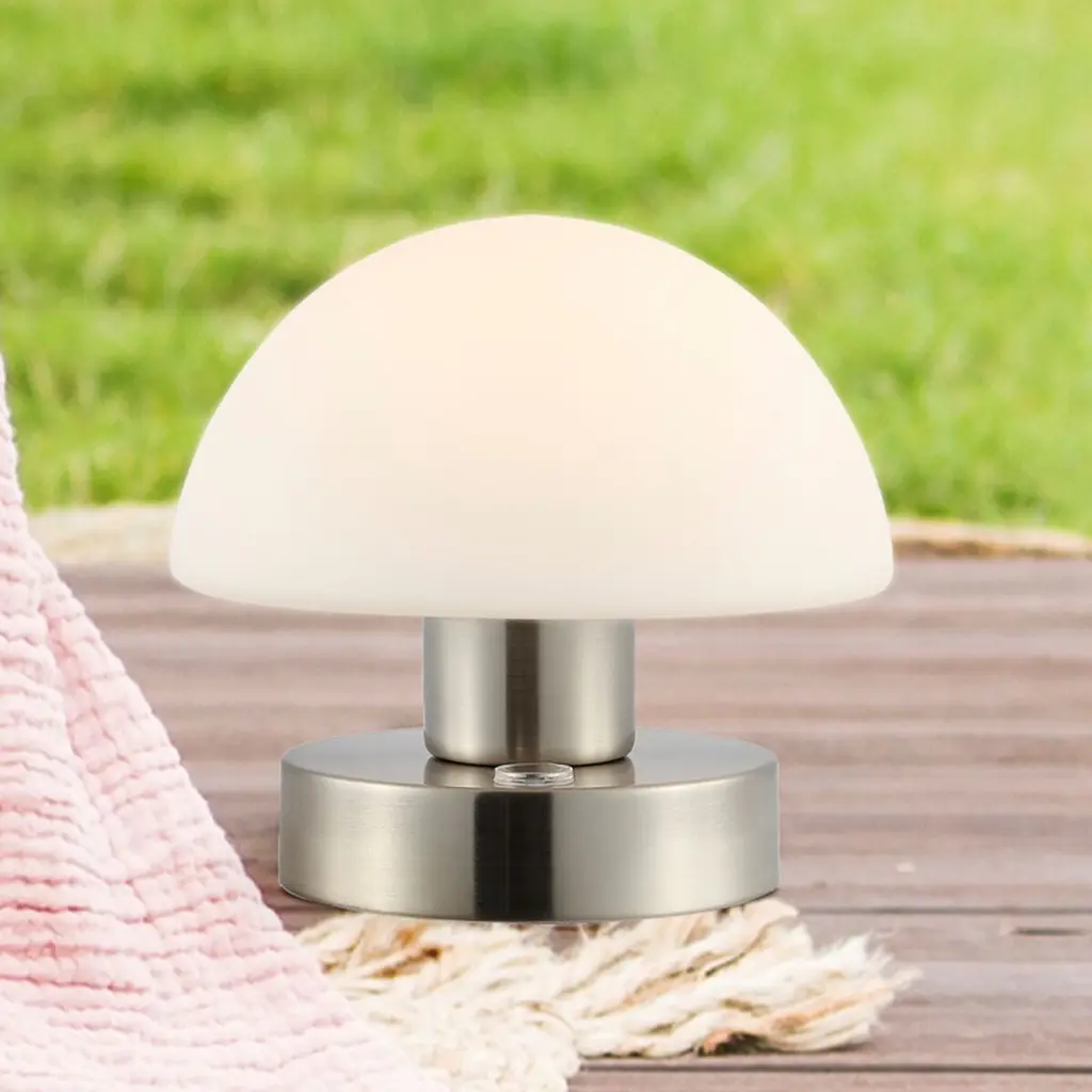Domes and mushroom shapes are once again in the style spotlight, which makes this petite table lamp both retro and of the moment. Because the lamp is cordless and rechargeable, it's also wildly versatile. The frosted-glass shade ensures a soft, flattering light.