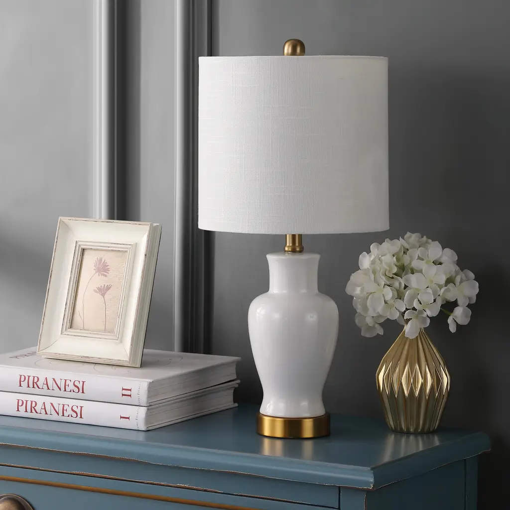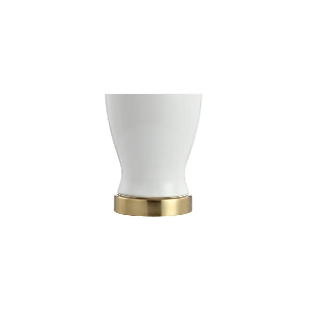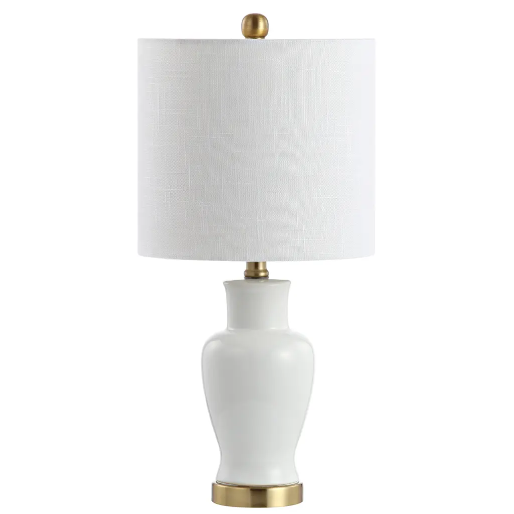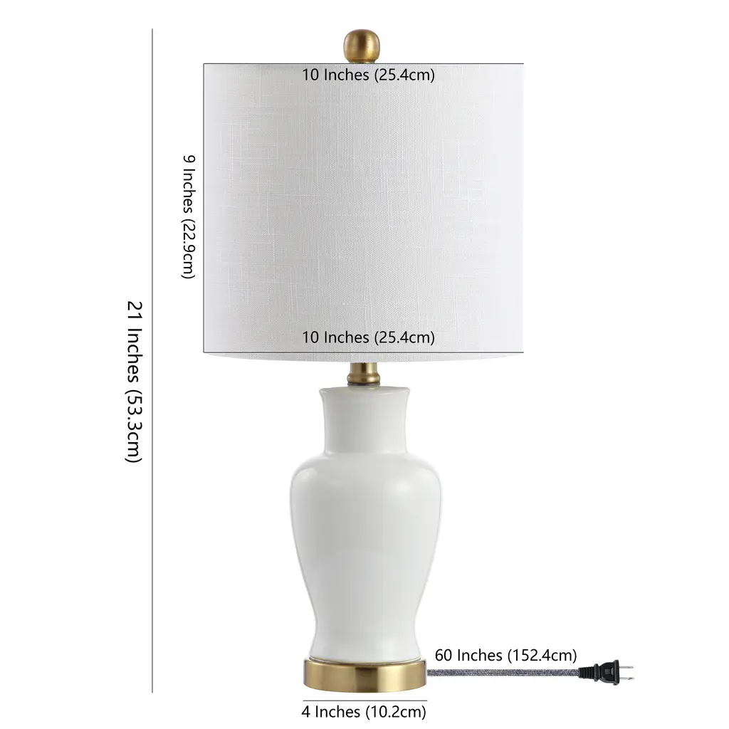 Our minimalist version of a classic features a matte white glaze on a porcelain vase lamp. This lamp would make the perfect pair for a bedroom, living room, or entry console. The pared-down silhouette suits contemporary, mid-century, or Hollywood Regency interiors; gold fittings add modern glam. The silk-wrapped cord is an upscale touch. Includes an energy-saving dimmable LED bulb.Features:Dimensions:About us:You see a lamp.We see a decorative work of art.A perfectly curved shade casts a dramatic shadow on a floor. A silk cord you never want to hide. Compatible with LED lightbulbs: as easy on the environment as they are on the eyes. The JONATHAN Y Lighting collection considers every detail from impeccably sourced materials to designer styling. And our prices are so attractive, we've transformed a functional necessity into a fashion accessory.JONATHAN Y Lighting - a fashion revolution in home decor.