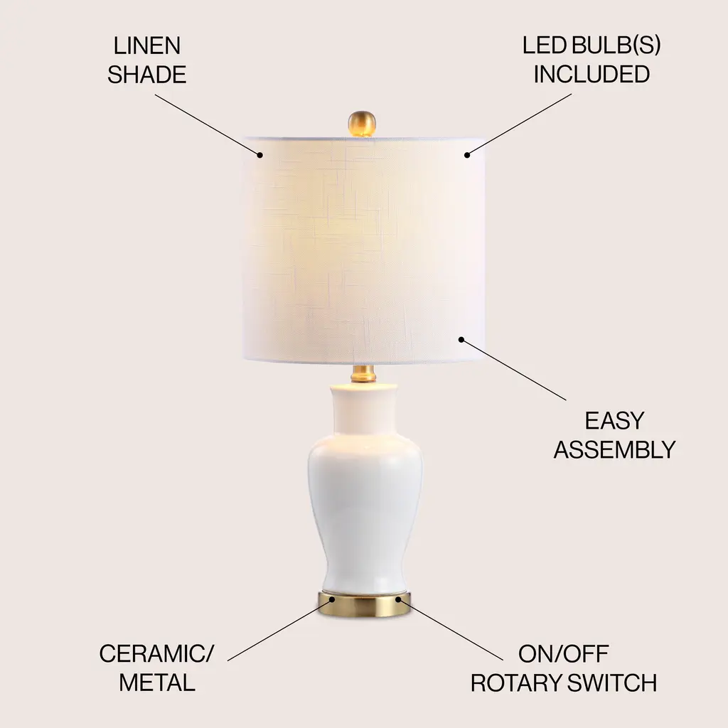 Xia 21" Ceramic/iron Modern Classic Led Table Lamp, White By Jonathan Y - White